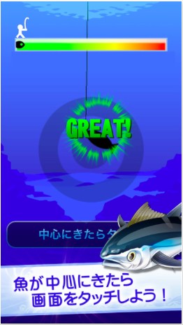 魚がヒットしたら、タイミングよくスマホ画面をタップして暴れる魚を釣り上げましょう。ゲットして初めて何が釣れたか知ることができます。魚が釣れるとポイントをゲットすることができ、貯めれば新しい釣りアイテムと交換することが可能です。