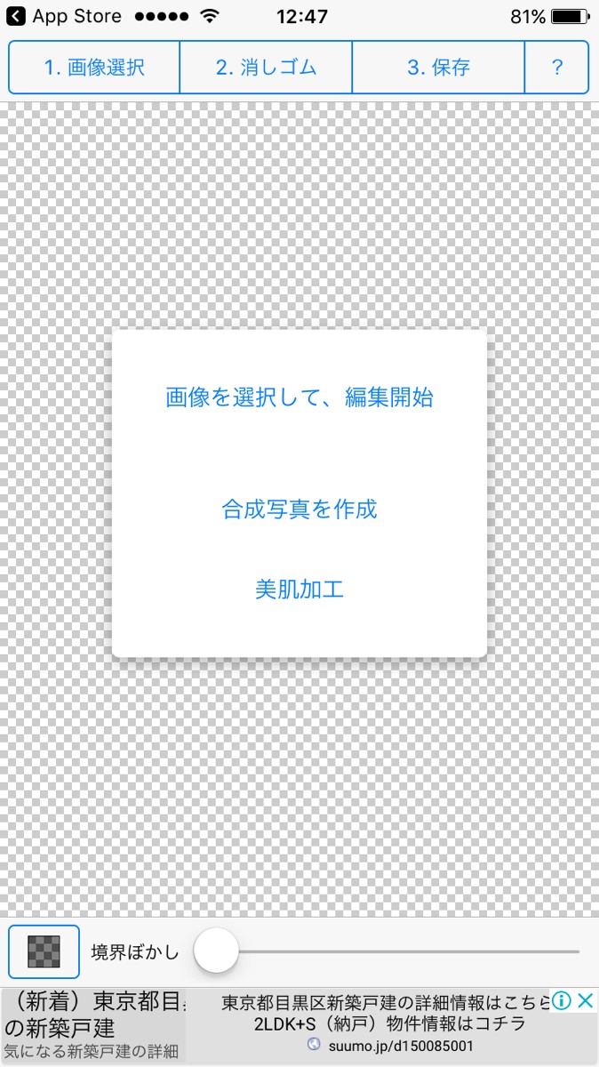 「背景透明化 for iPhone」」で実際にやってみました。手順をご紹介します。