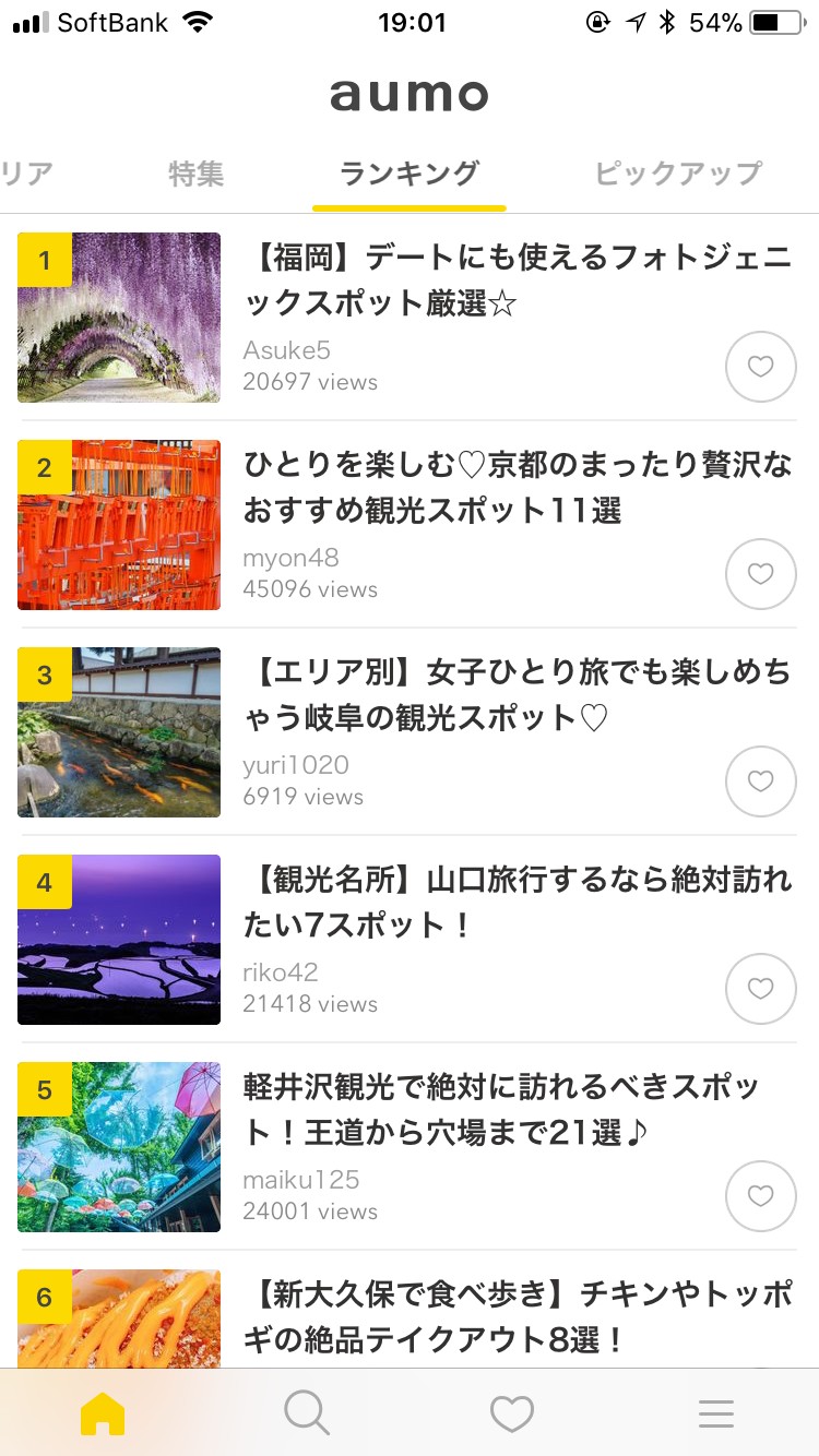 aumoは「あなたの毎日がきっと楽しくなる」がテーマのおでかけメディア。20代から30代の女性目線で書かれたグルメやスポットの観光情報、サロンやフィットネスなどの美容情報など盛りだくさんの読み物が完全無料で集まっています。読まれている記事がランキングになっているので次に行きたい旅行先を探すのにもぴったりです。