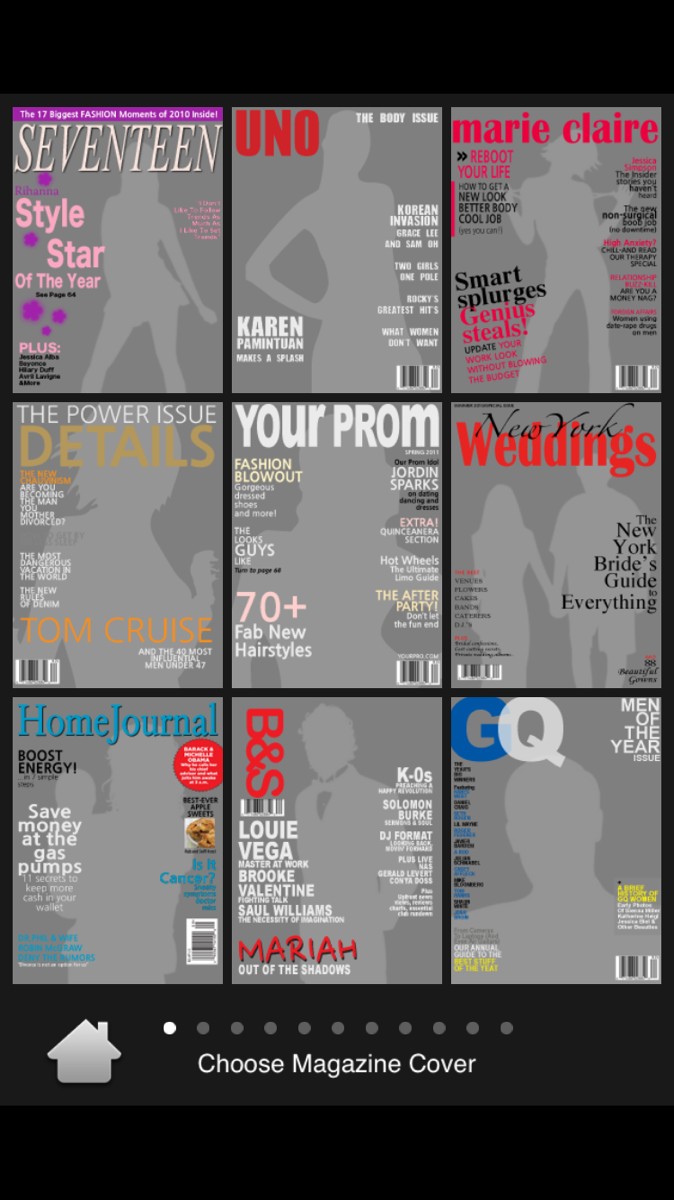 1.「RealCover - Fake magazine covers」のメイン画面下の左端にあるアイコンを押すと、雑誌のパックが選択できます。それぞれ開くと、表紙カバーが現れるので好きなものを選択しましょう。
