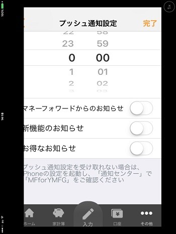 プッシュ通知の設定では、通知を受け取る時間や細かな設定ができます。