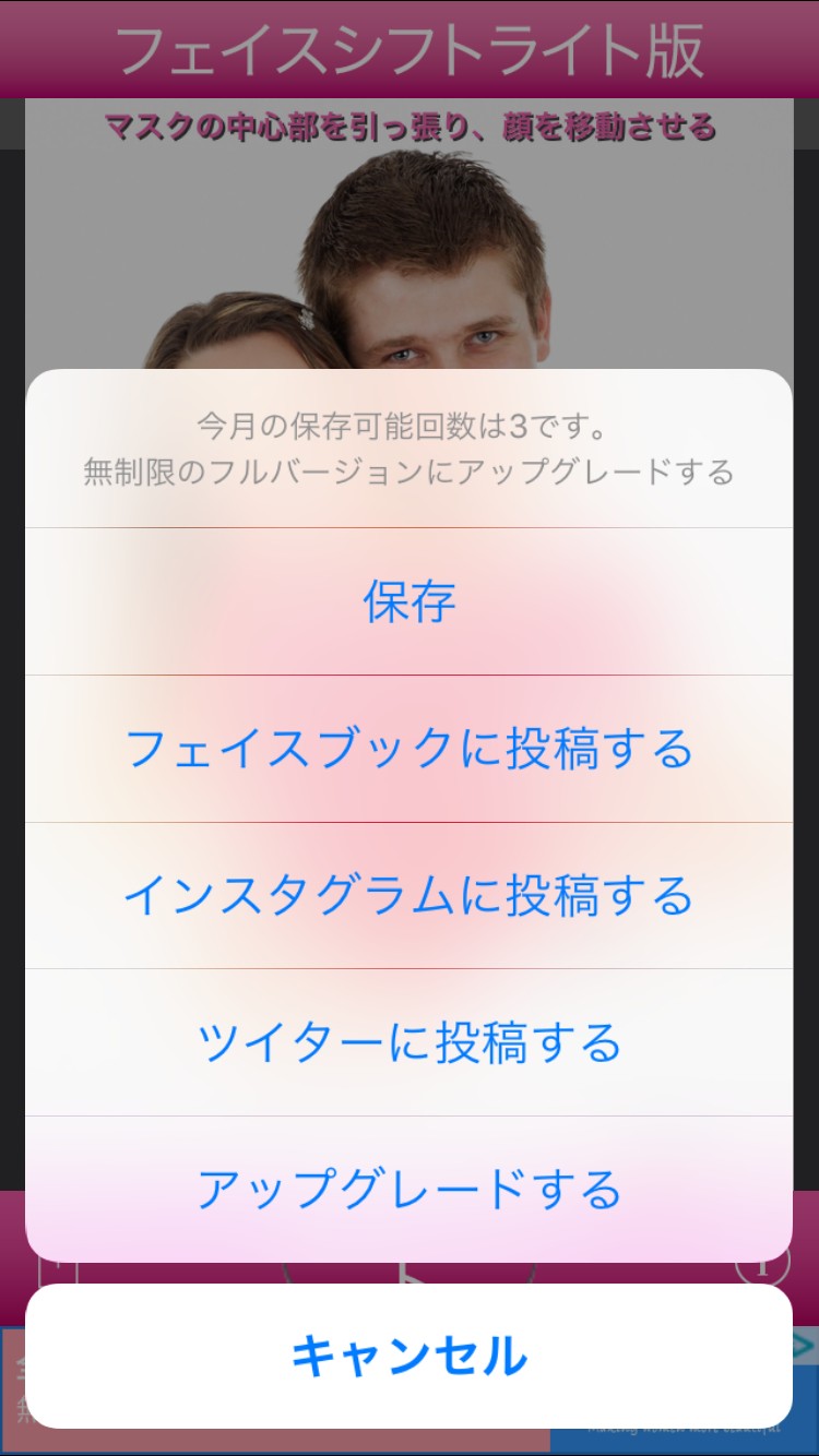 完成した写真はカメラロールに保存することもできますが、Facebook、Twitter、Instagramにそのままシェアすることも可能です。顔が入れ替わった写真をSNSに投稿して、みんなの注目を浴びちゃいましょう!