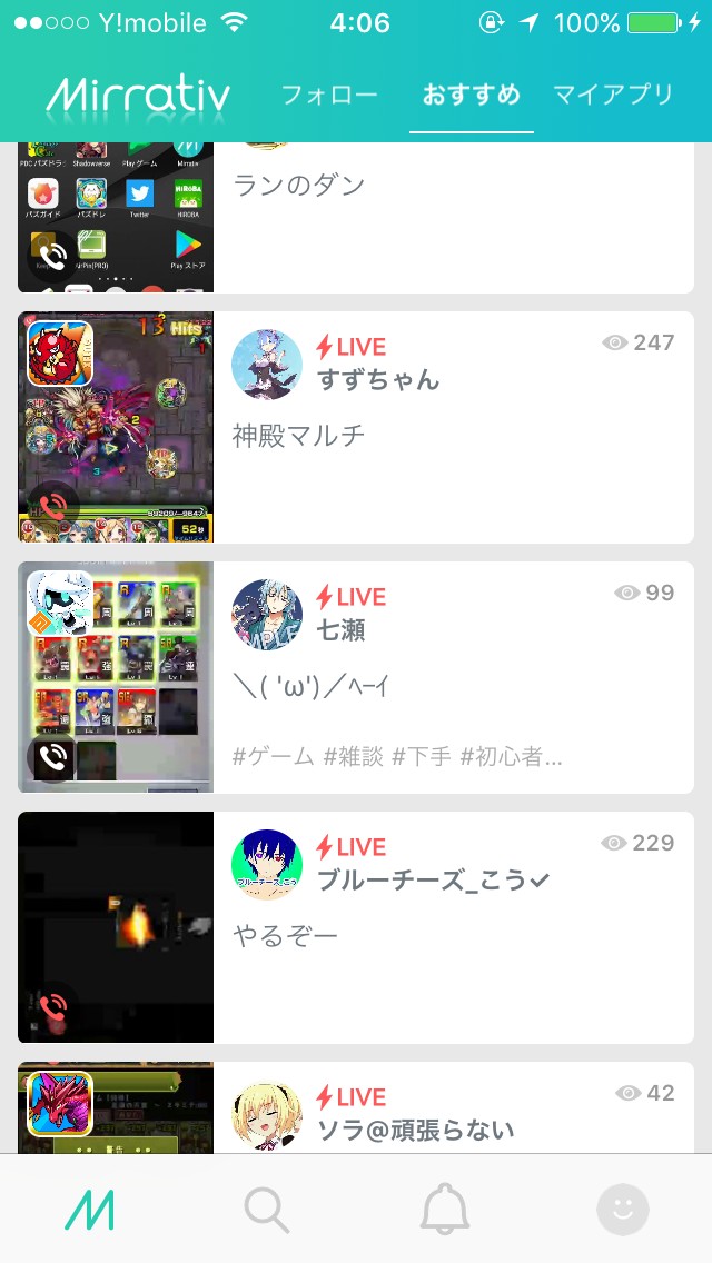 - 自分の好きなスマホゲームの実況動画をリアルタイムで視聴できる