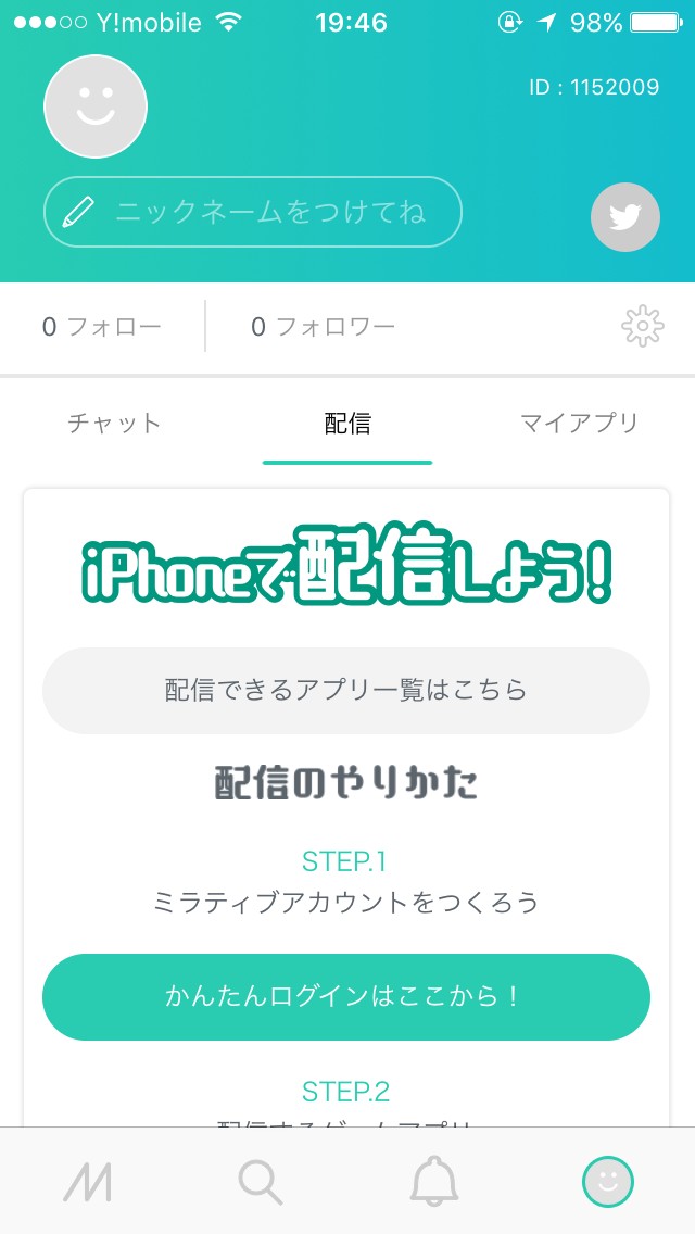 詳しい配信の流れや操作方法などは画像の右下の顔アイコンをタップすれば配信専用タブに飛んで、そこでステップごとにiPhoneでの配信方法が丁寧に記載されているので生配信初心者の方でも安心して利用できます。
