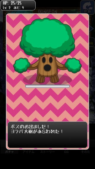 通常のRPGであれば、最初はプレイヤーのレベルも低いため、モンスターもそれに合わせたようなレベルのモンスターが登場するのが普通ですが、「萌えガチャRPG〜呪われた姫君と半ノラ騎士〜」では、突然ボスが登場することもあり油断ができません。