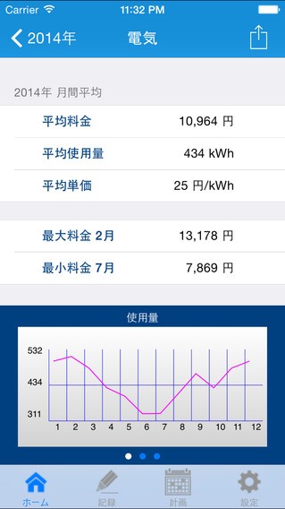 また、一日平均使用量も表示されますので、一日にどれぐらい電気/ガス/水道を使用しているかわかりますので、節電の目標が立てやすく、水道・光熱費も抑えられますので、非常に便利なアプリだと思いました。