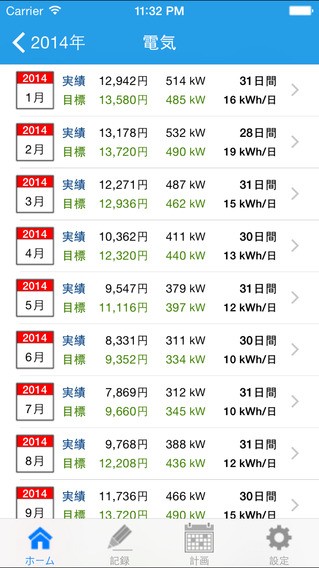 ・全国平均や前年度の記録が閲覧できるので、節約の目標が立てやすい!
