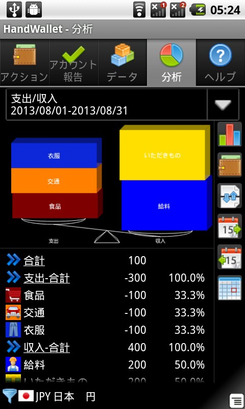 このアプリの最大の特徴はわかりやすさです。4種類のグラフを使って、視覚的に表されているのですが、それがわかりやすい。