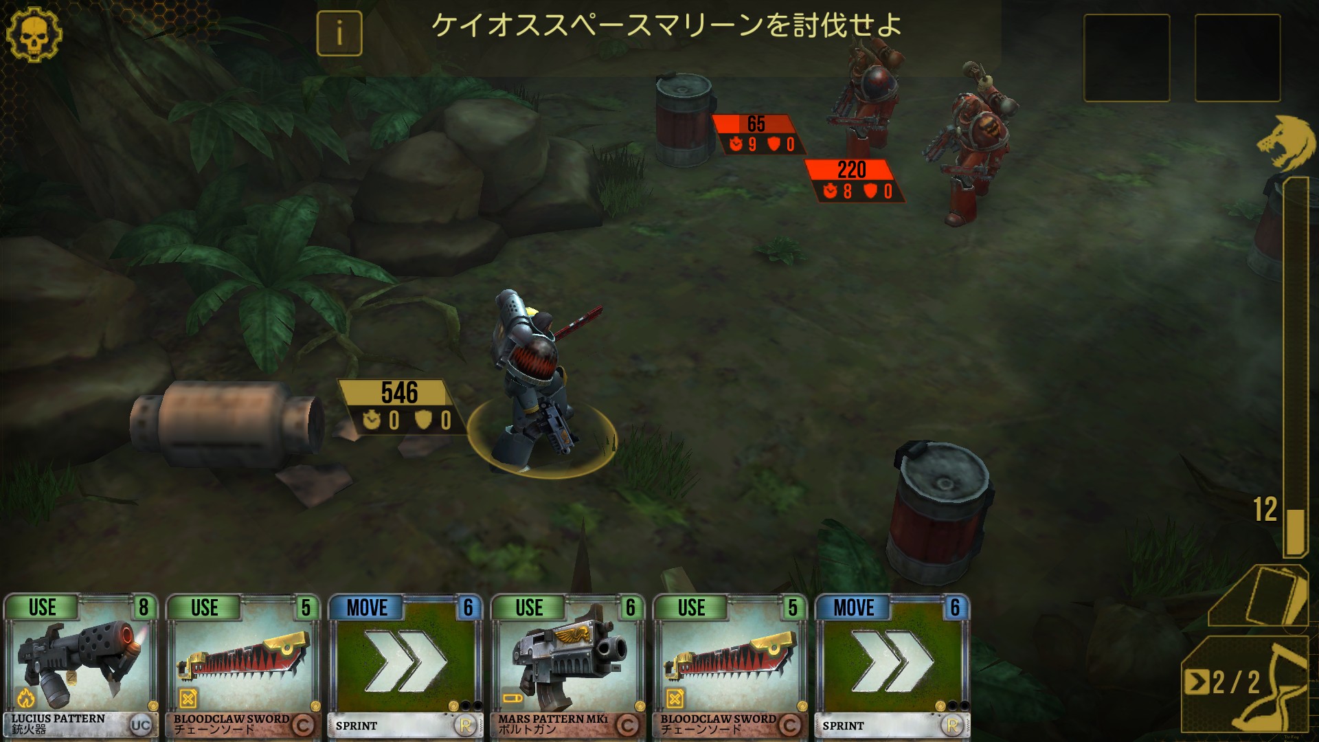 今回は「Warhammer 40,000: Space Wolf(スペースウルフ)」を紹介します。このゲームは様々な武器カードを駆使して敵を撃破するターン制のシミュレーションRPGです。