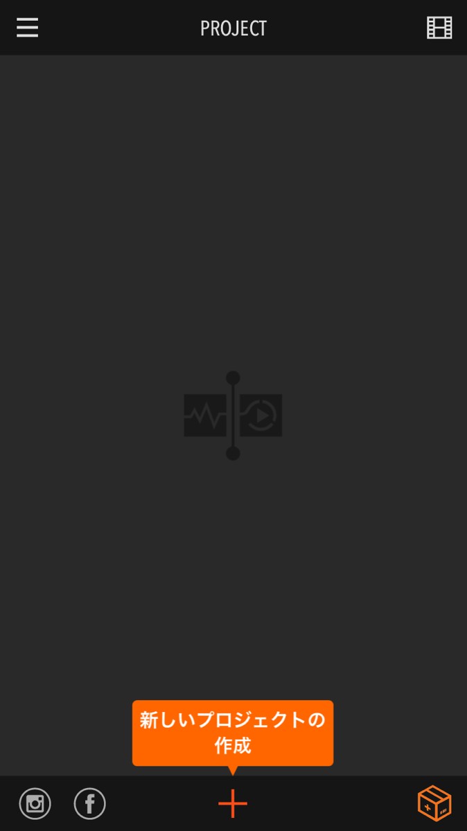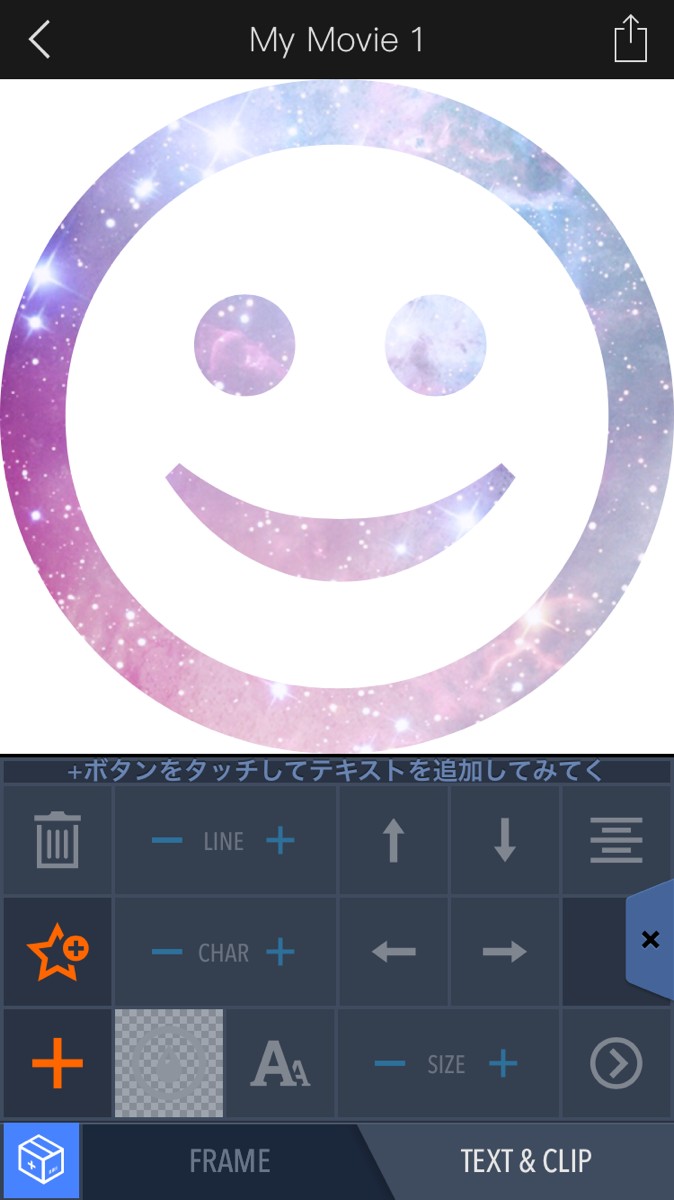 ①アプリを起動すると現れる、画面中央の「+」マーク。これをタップすると、3パターンのサイズから選択できます。