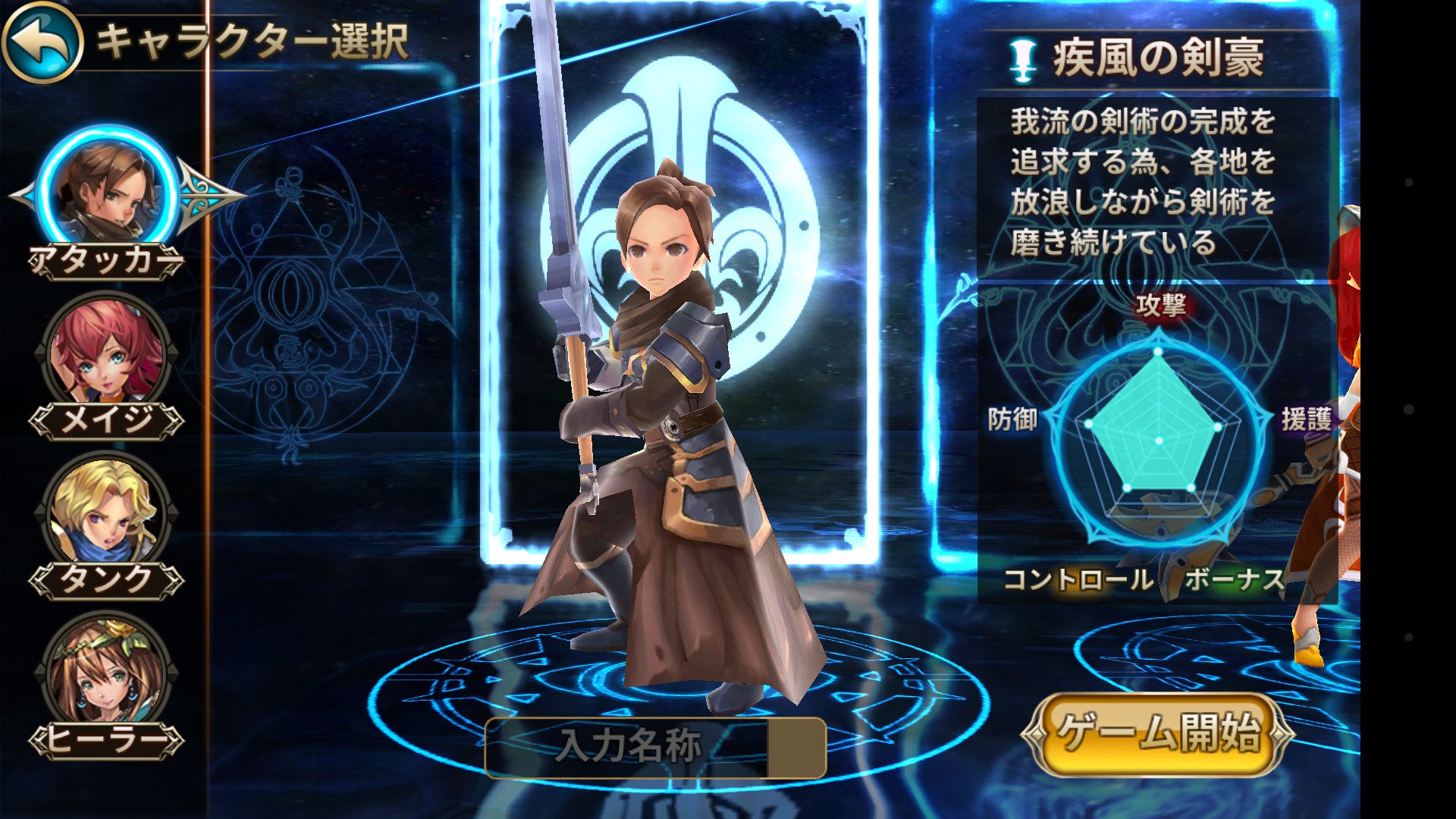 ゲームを始めたらまずは4人の中からプレイヤーが操作するキャラクターを選びましょう。選べるのはアタッカー・メイジ・ヒーラー・タンクの四種類です。
