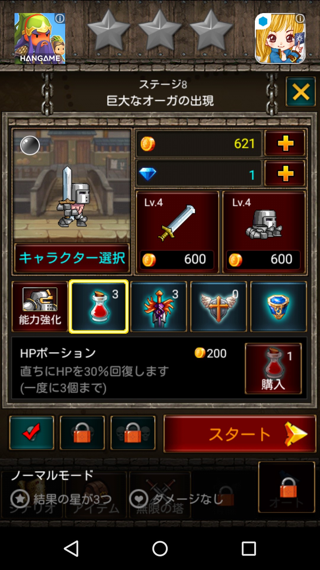 ハートの数だけステージに挑戦できます。失敗しない限りはハートが減らず、プレイし続けることができるのは良い点です。