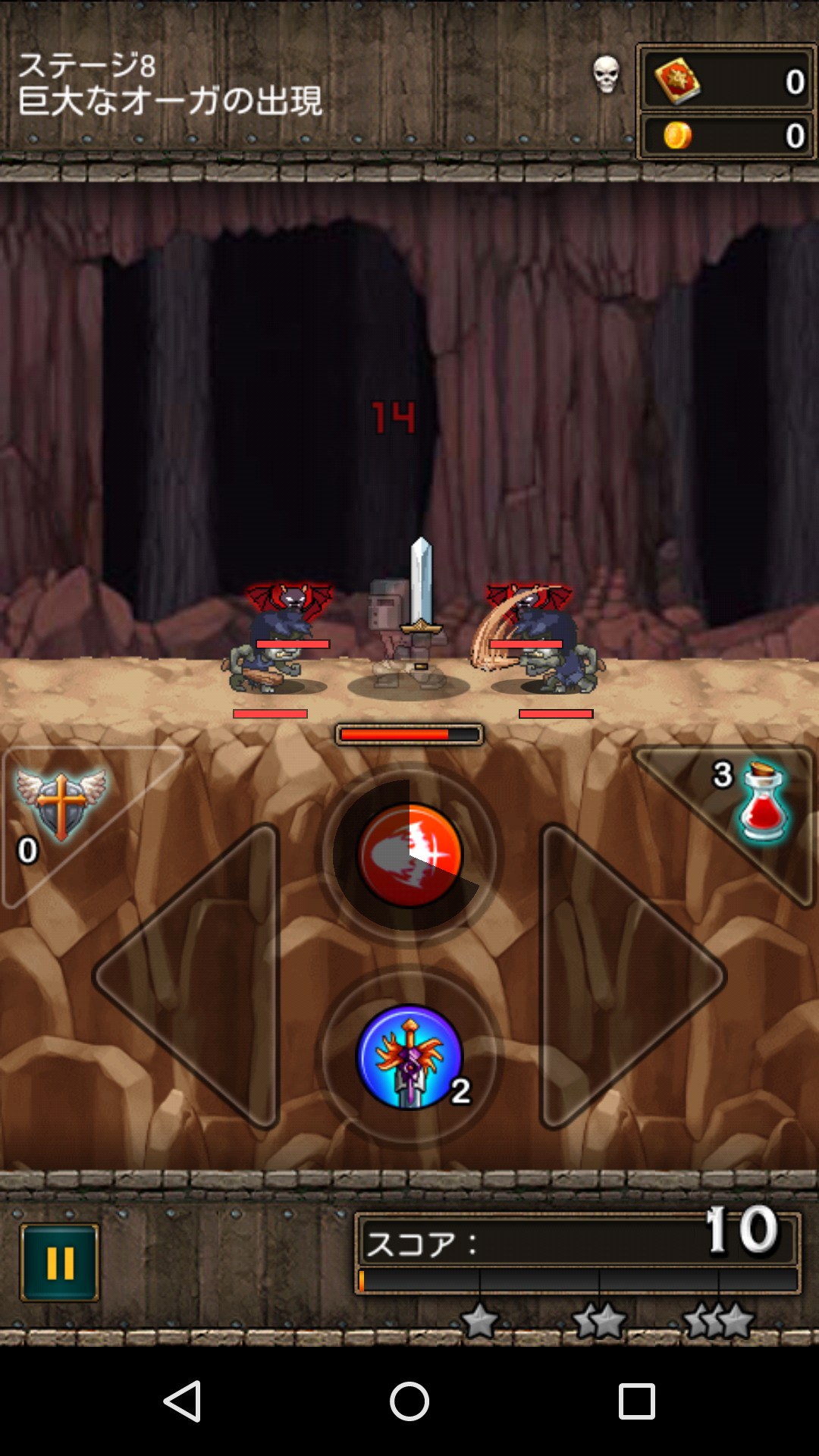 タイミングに気を付けなければなりません。敵に接触したり遠距離攻撃に当たったりするとHPが減り、0になると失敗です。スタミナ制を採用しており、