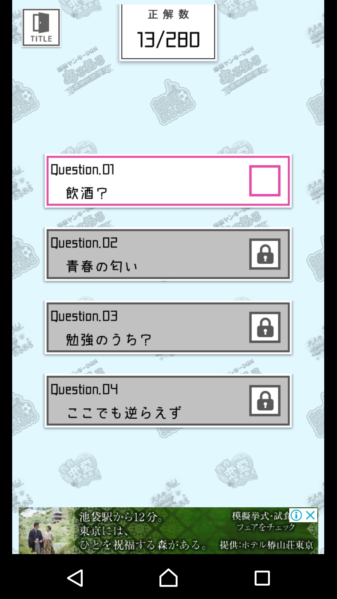 • 暇つぶしに最適な無料で解ける問題数は全部で280問。あるある問題を心ゆくまで堪能できる。