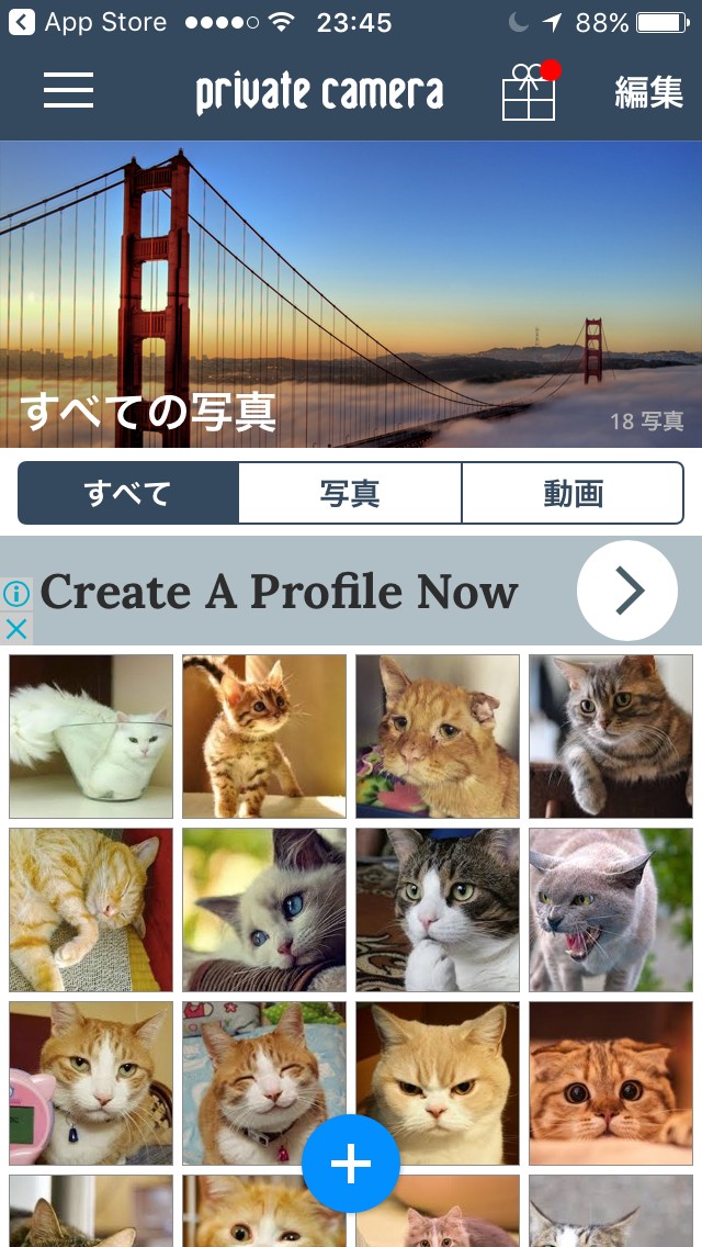 ・スマホのアルバムに保存したくない写真や動画を、アプリ内のアルバムに保管できる