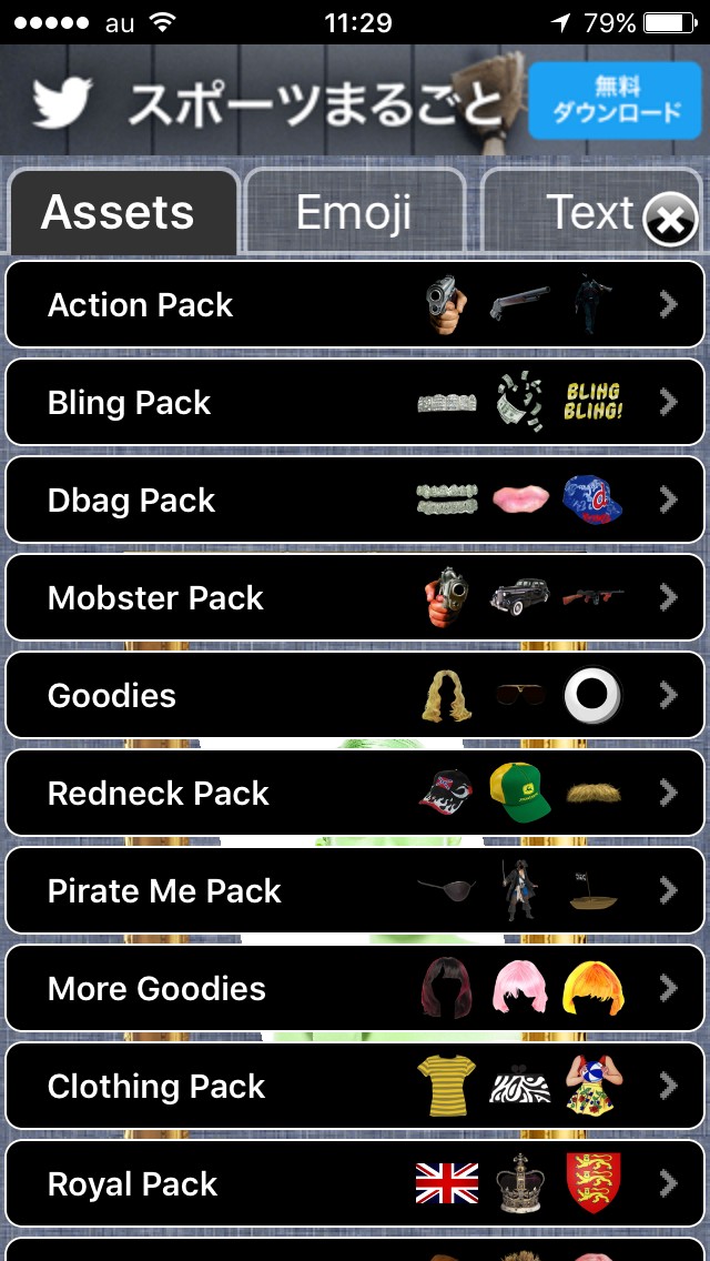 ・アクションパックや王室パックなど、ステッカーがカテゴリ化されている