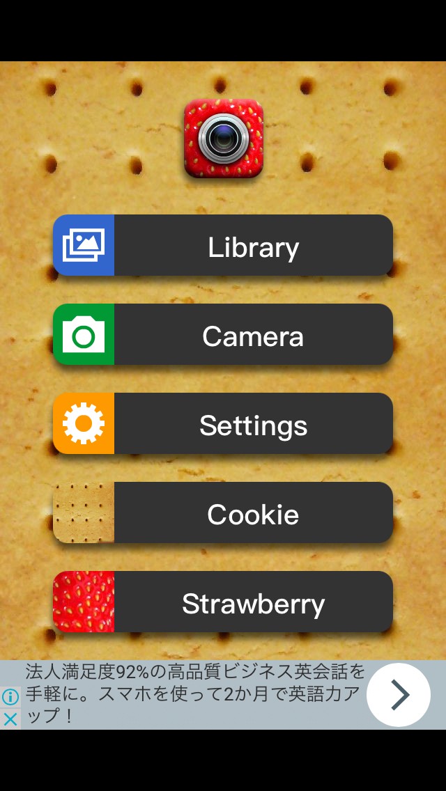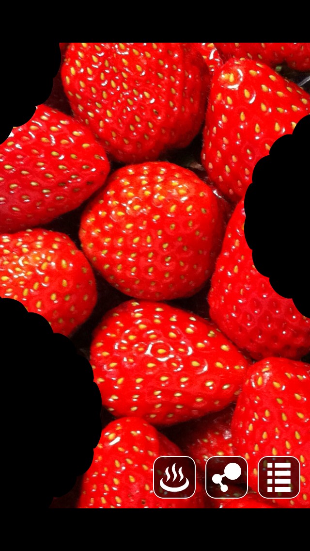 ・写真に湯気をポンポンと表示できる・アプリ内にクッキーとイチゴの写真が用意されているので、スマホに食べ物の写真がなくてもアプリを楽しむことができる
