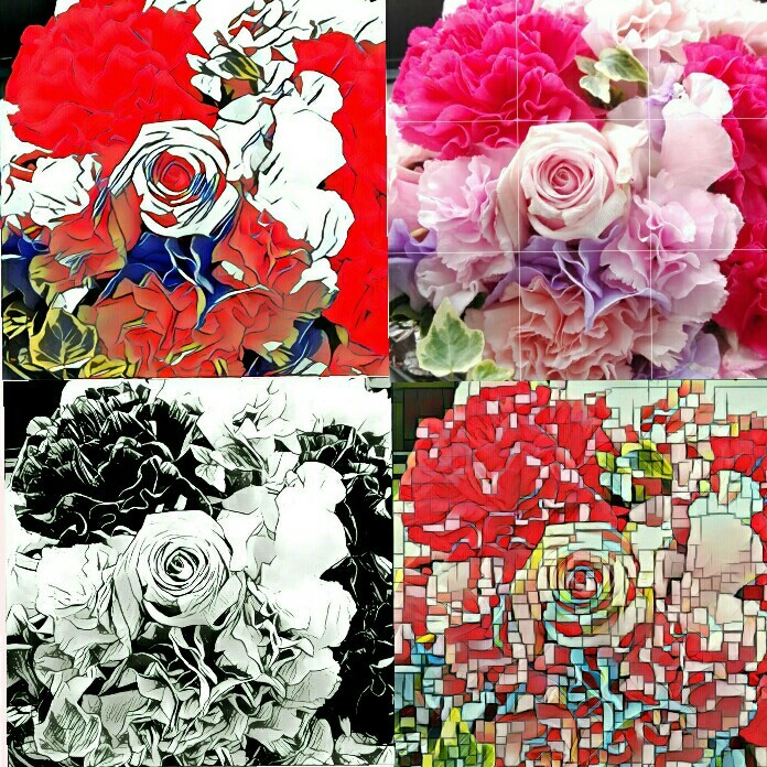 ゴッホや、ピカソ、葛飾北斎のような有名画家のタッチになったり、モザイクやステンドグラス、なぜか海の上に浮いているような加工、アメコミのようなポップな感じ、シンプルなモノクロのペン画などなど、本当に幅広い画法が網羅されています。そんな様々なイメージに1枚の写真がワンタッチで変身するところが面白いのです。