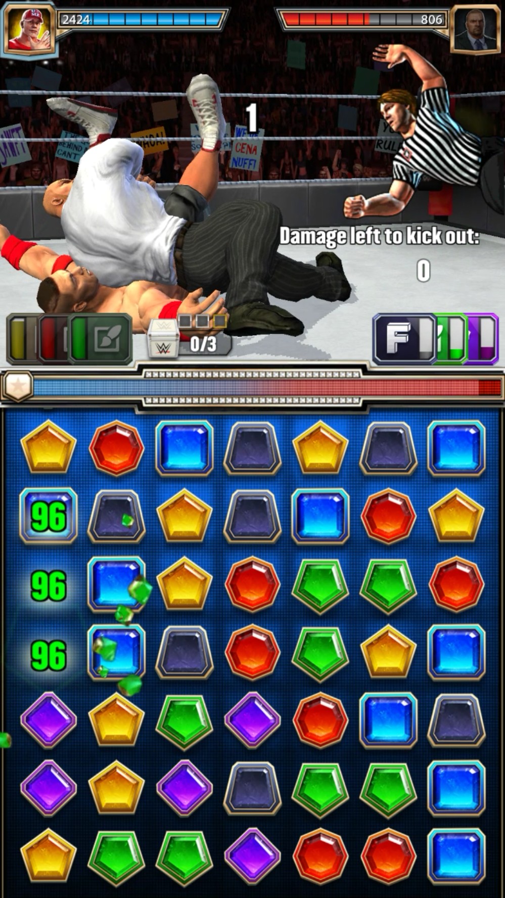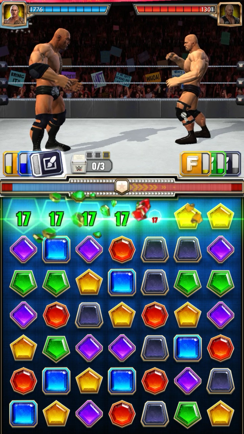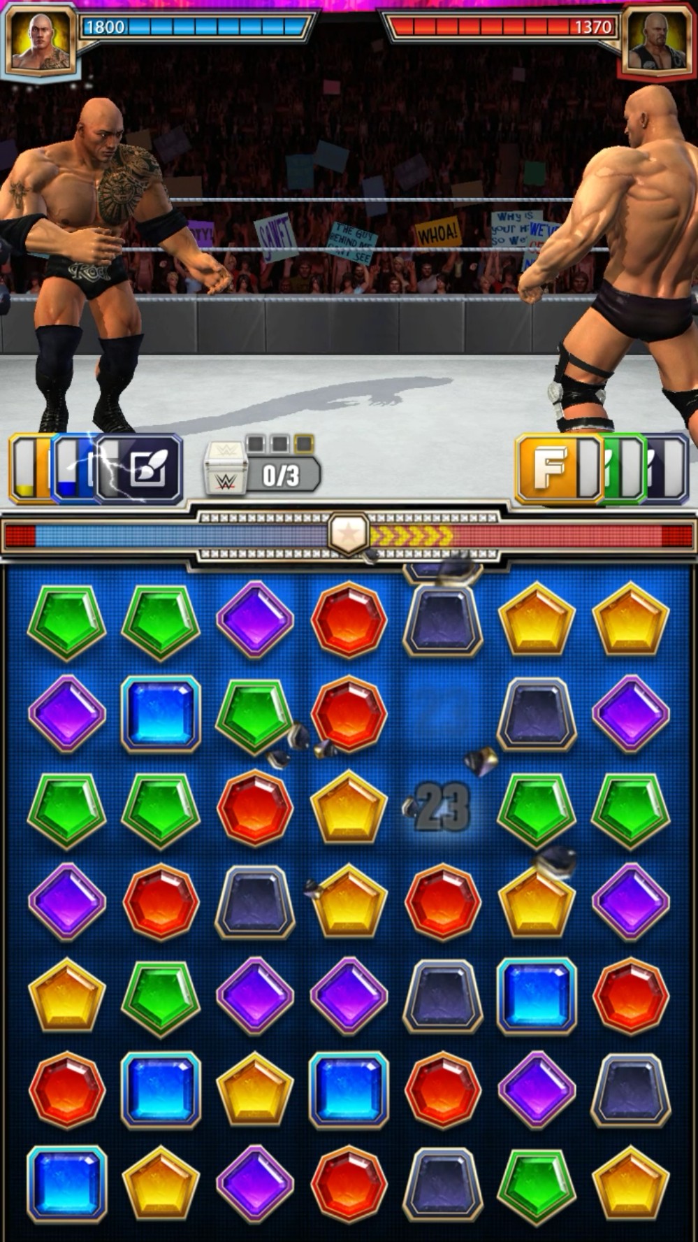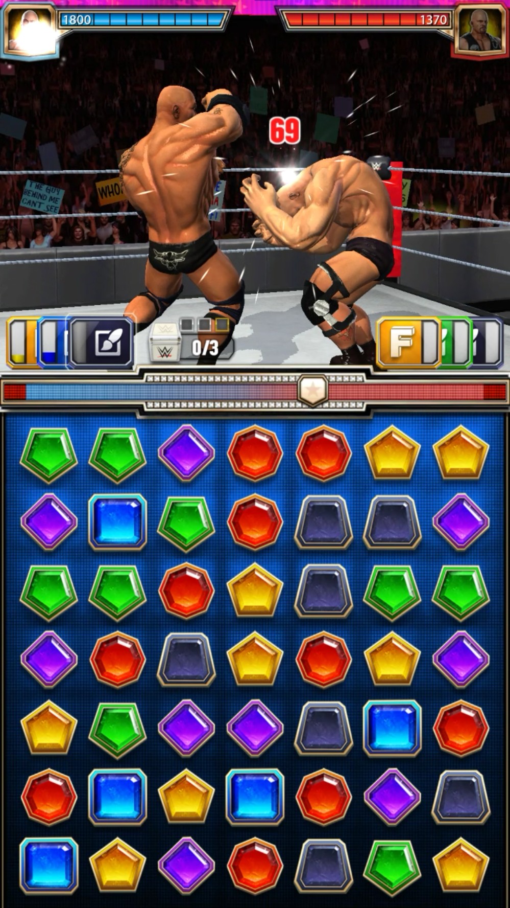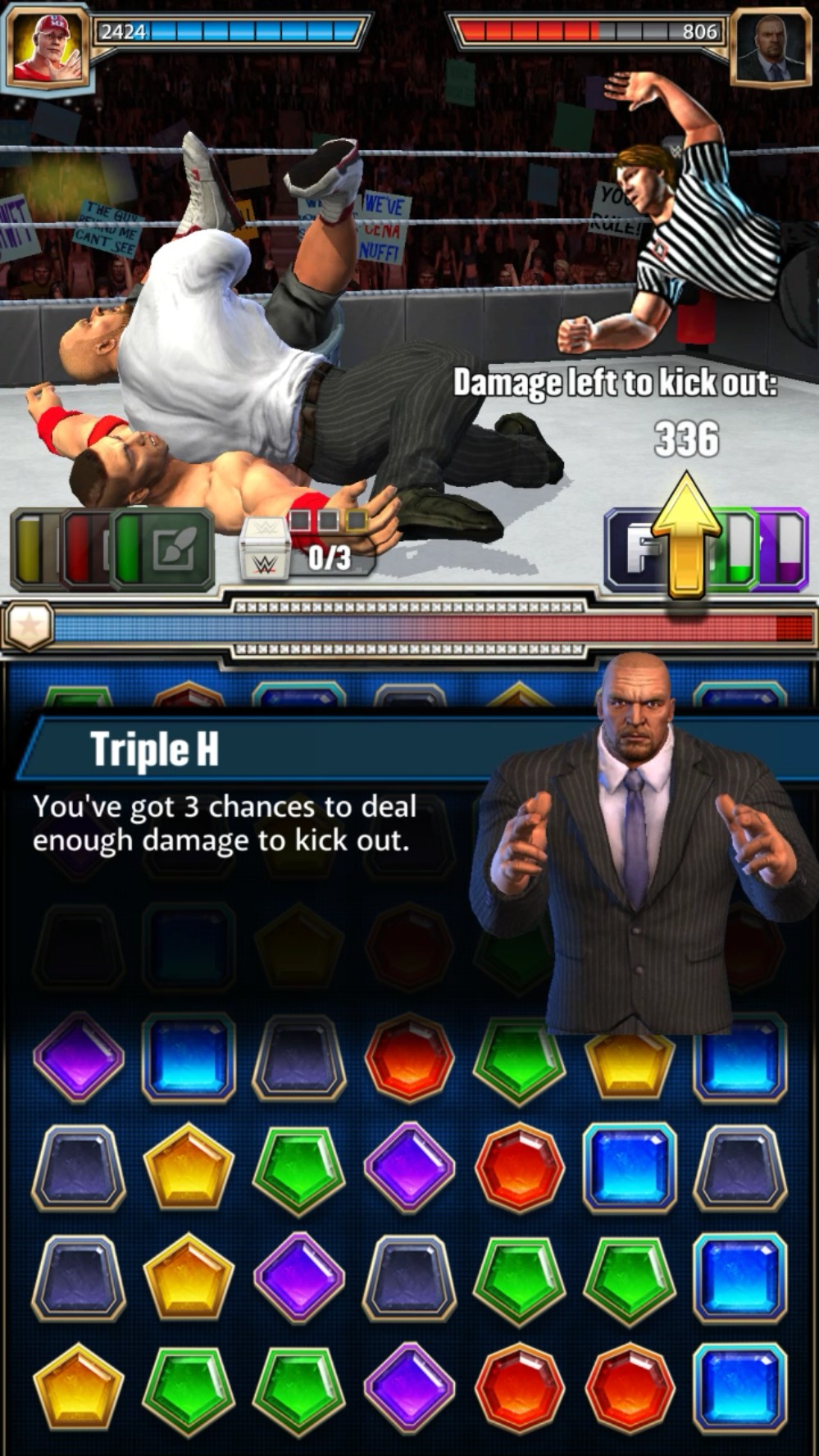 「WWE: Champions - Free Puzzle RPG」でプロレス試合の流れ!