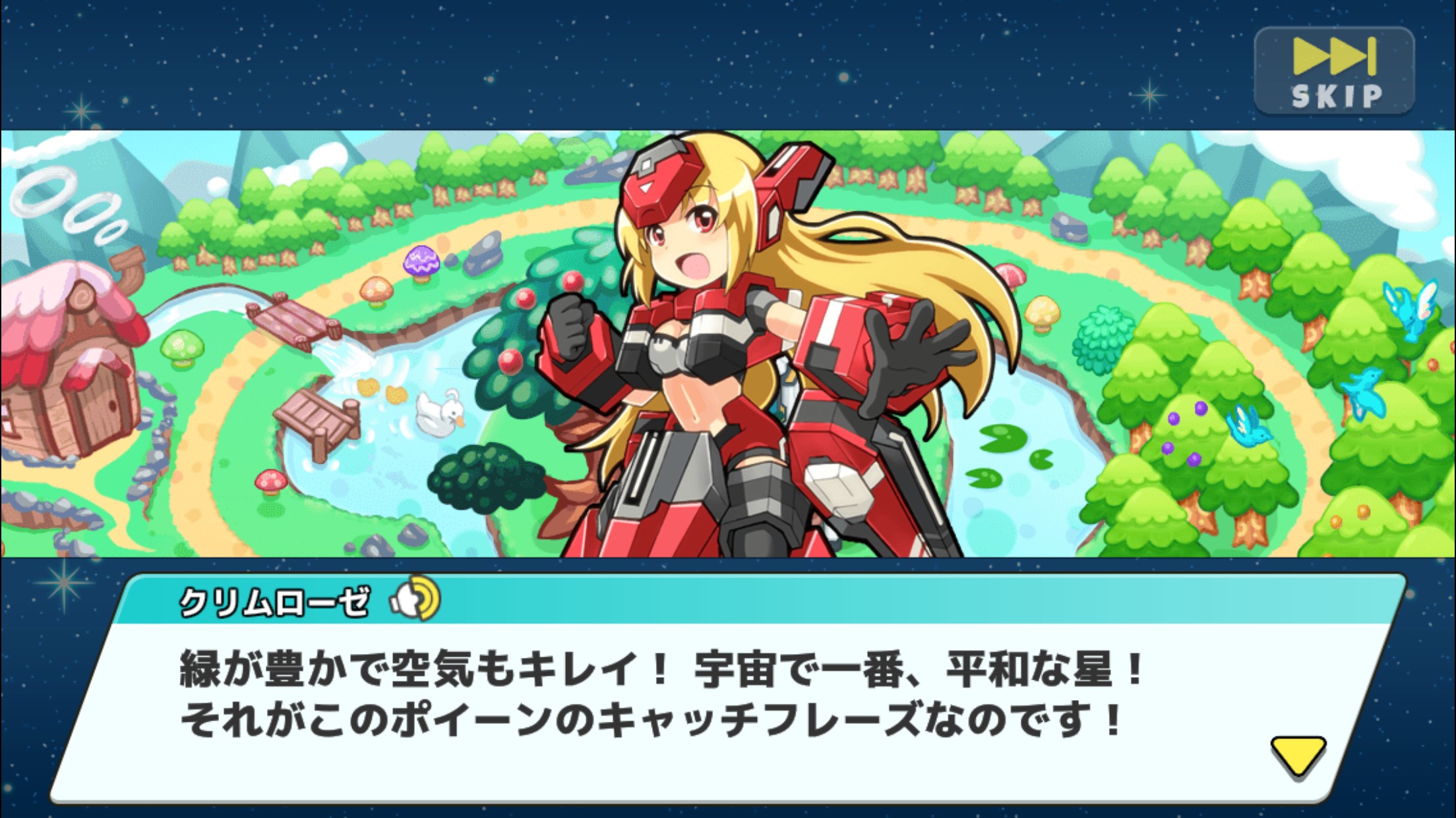 このゲームアプリでは、感情を持っていたり、言葉を話す、まるで人間のようなロボ・ロイドたちがたくさん登場します。そのロイドであるクリムローゼが住む、惑星「ポイーン」は緑が豊かで空気もキレイな宇宙で一番平和な惑星です。