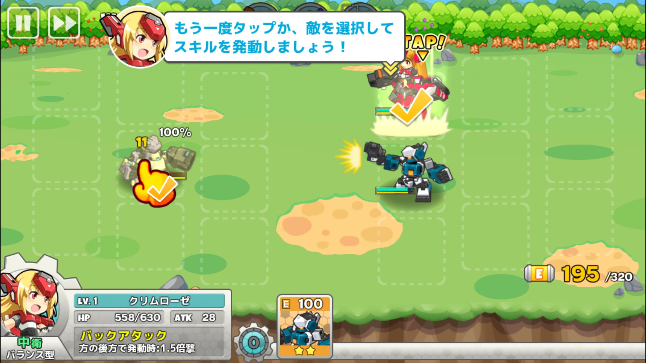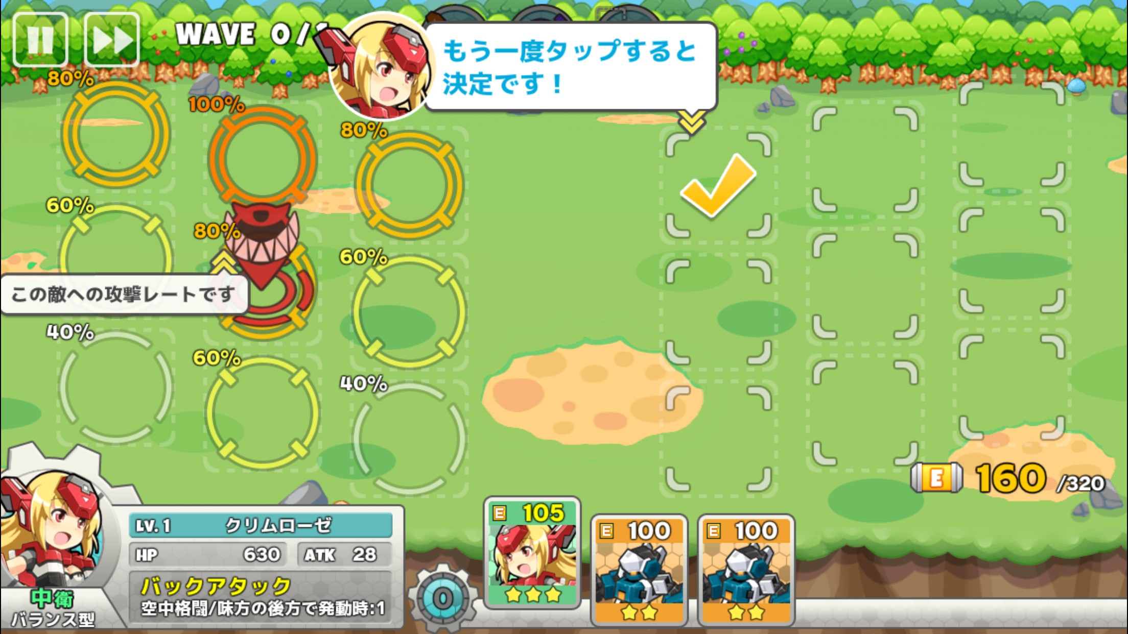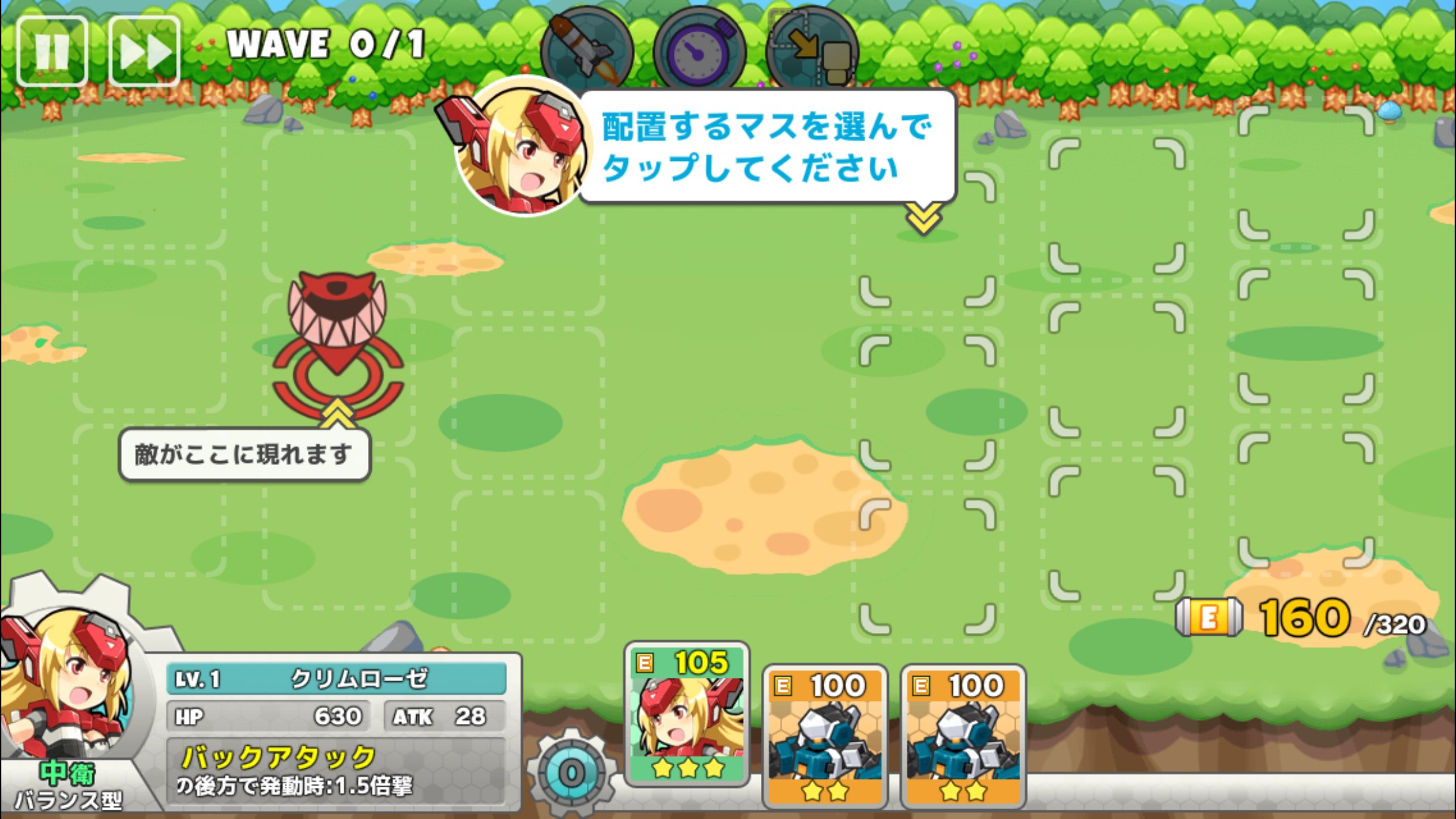 ロイドが攻撃を行う頻度は敵との距離によって変動します。ロイドには「前衛」「中衛」「後衛」の3つのタイプがそれぞれにあり、「前衛」タイプのロイドはなるべく敵の近く、「中衛」タイプは敵から少し離れた位置、「後衛」タイプは敵からとても離れた位置に配置すると、バトルが有利に攻略できます!