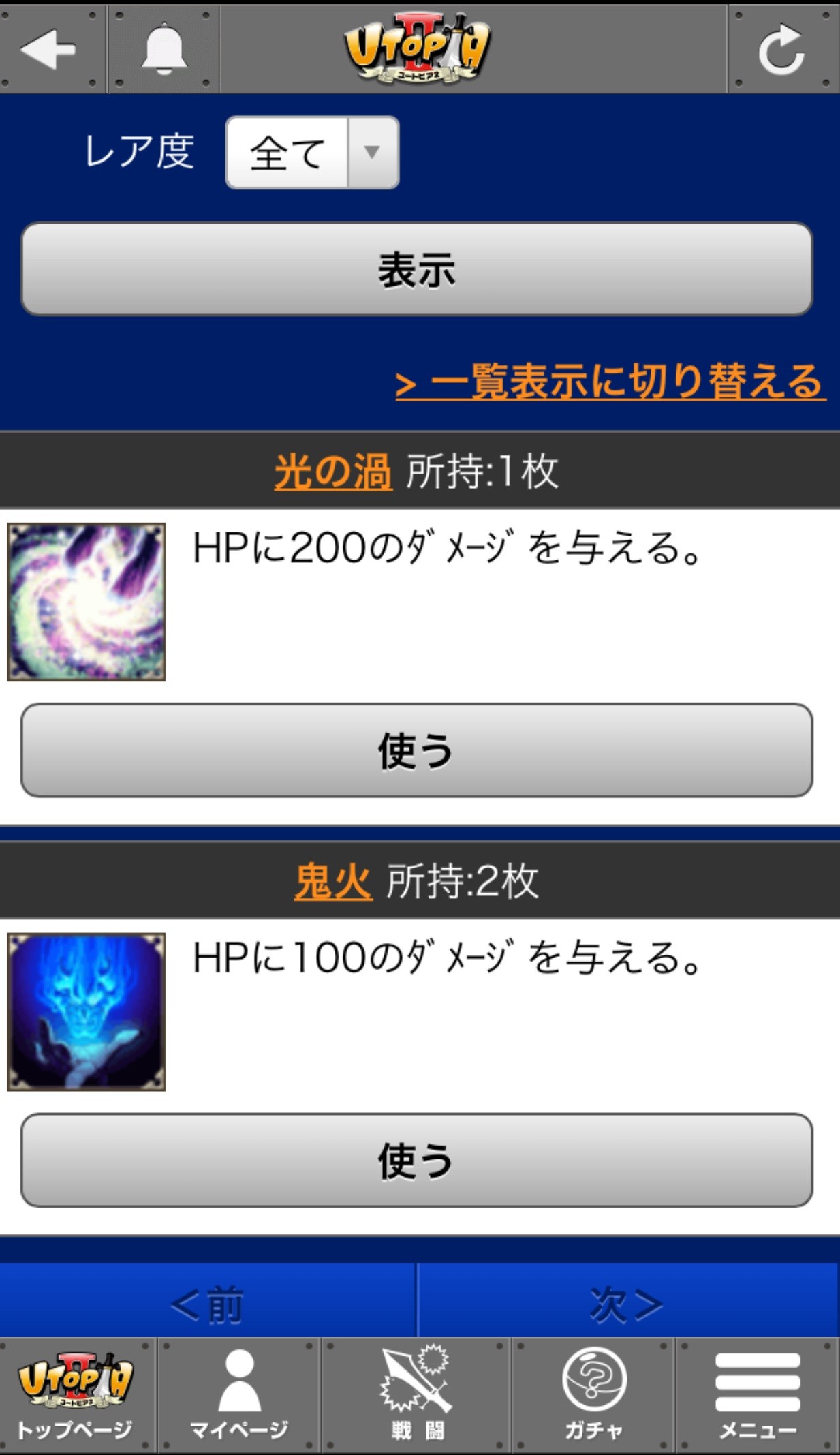 「使う」をタップすると、バトルカードが発動されます。この画面では「鬼火」のバトルカードを使用しました!