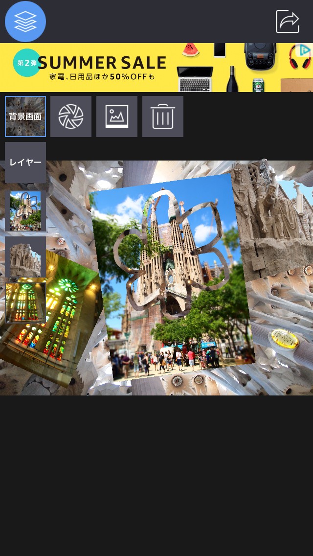 ・背景画像の上にレイヤー画像を追加して、合成写真を作成できる