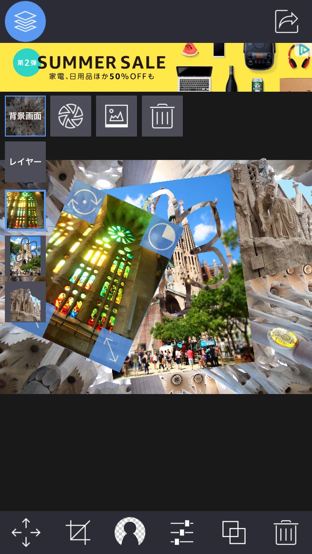 ・レイヤー画像の拡大縮小、角度、位置などを自由に調整できる