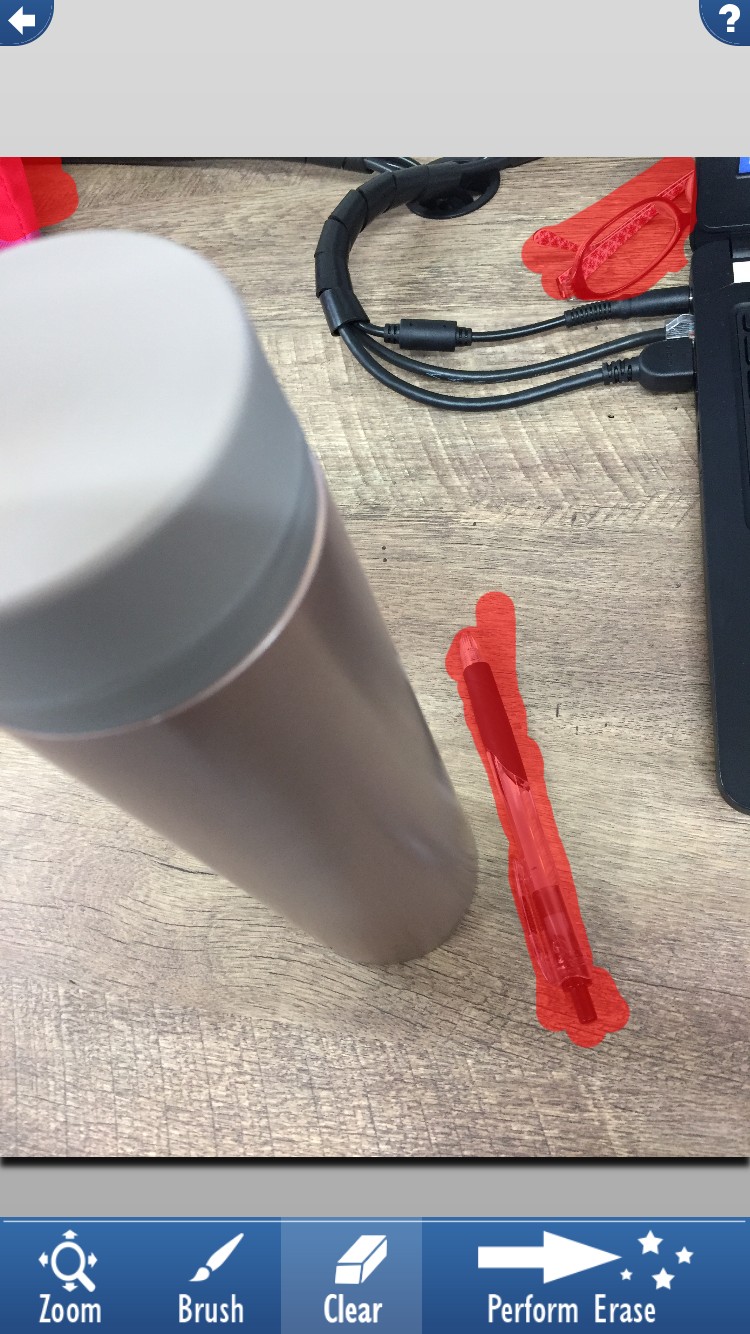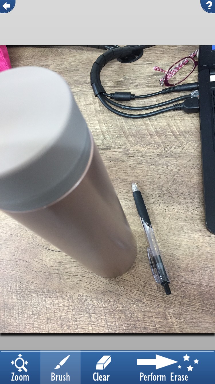 「Easy Eraser: Remove unwanted objects, items or pimples from an image or photo by retouching.」アプリを起動すると、写真を撮るか、撮影済みの写真を選びます。Brushボタンで消したい部分をなぞると、赤くなります。この赤くなる部分を消すので驚かなくて大丈夫です。なぞった部分を修正したい時はclearボタンで微調整します。Perform Eraseボタンを押すとなぞった部分が消されて、加工された写真になっています。変更したい時はChangeで前の画面に戻れ、これでOKな時はKeepをタップします。キープした後は、カメラロールに保存可能で、Instagramを始めTwitterなどのSNSにアップすることができますよ。