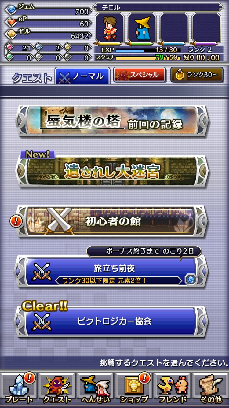 様々な難易度のクエストをクリアしていき、経験値やアイテムを手に入れましょう。クエストをクリアすると、FFシリーズに登場するキャラクターも増えていきます。最初は、ロジックパズルも簡単なものが多いですが、難易度の高いパズルもあるので、やりがいがあります。