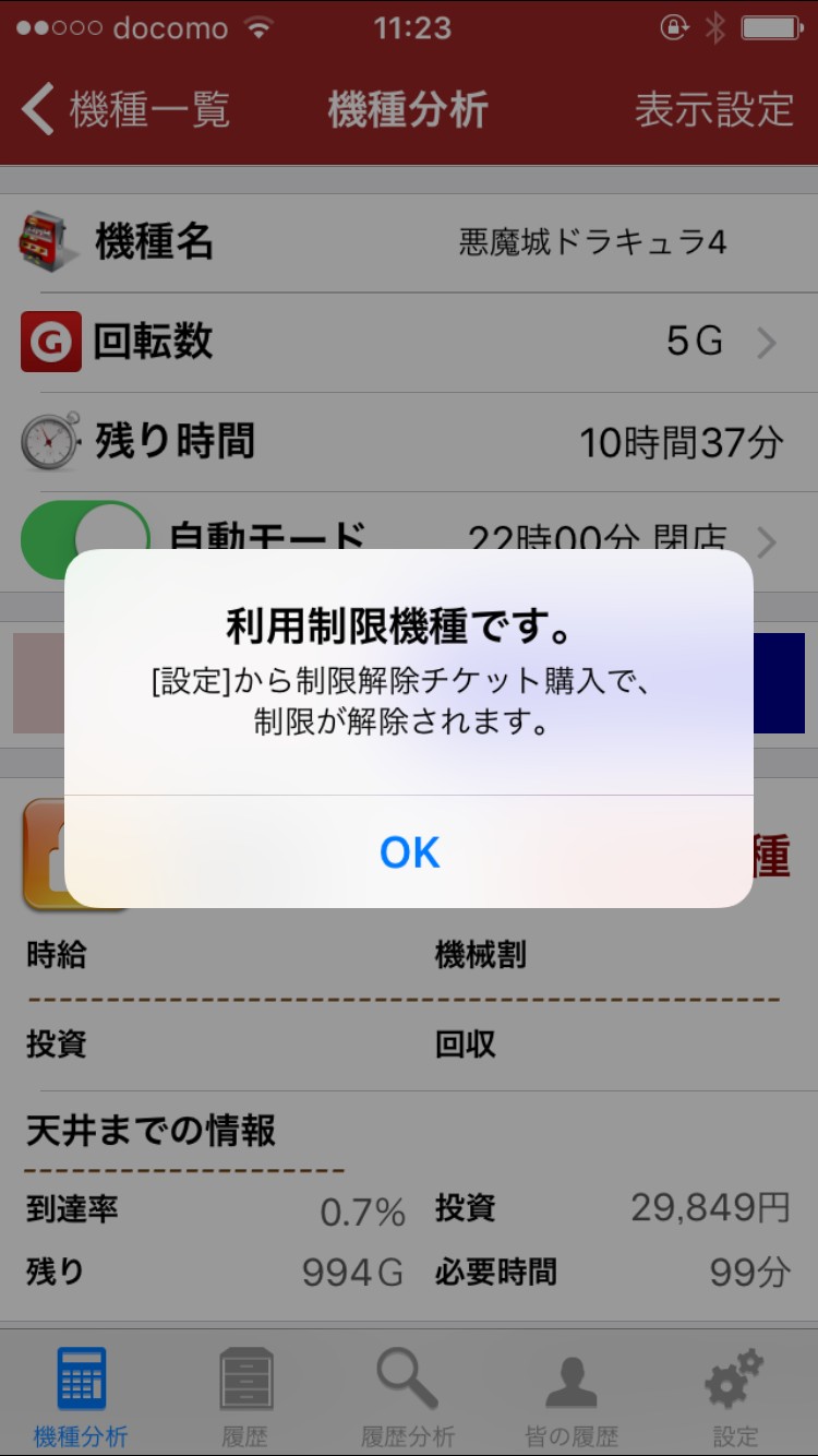 当アプリは、インストール無料ですが、機種によっては解析が有料のものもあります。そんなときは「設定」画面から制限解除チケットを購入する必要があります。