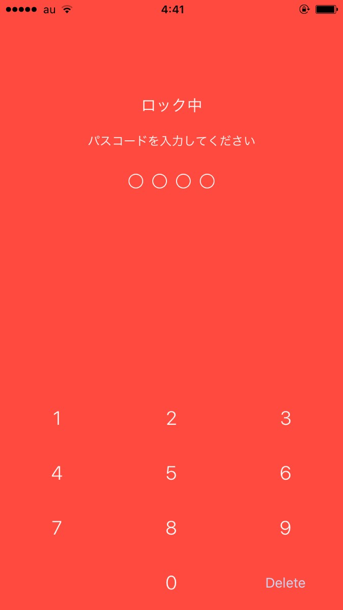 ・最初に4桁のパスコードを入力します。パスコードはアプリを起動するたびに必要になるので、忘れない数字にしておきましょう。