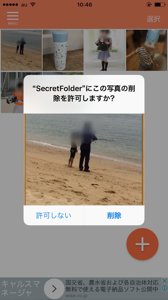 ・端末に保存してある写真の一覧が出るので、そこから秘密の写真を選択します。このとき、元のフォルダの写真を削除してもいいかどうかを聞いてくるので、許可をすれば、元のフォルダにあった秘密の写真をあとから自分で消すという手間が省けます。