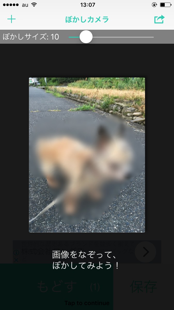 ・あとは隠したい箇所を指でなぞるだけで簡単にぼかすことができます。失敗した場合は「もどす」をタップすれば戻すことができるので安心です。