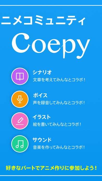自分の絵に声が入れたいもしくは、声優を目指している方で、自分の声を入れる練習をしてみたいと思ったことはありませんか?自分の絵を書いたとしても、アフレコしてくれる人がいるのだろうかと考えてしまうかと思います。また、アフレコしたい声優志望の方でも、自分の声を発表できる場所がなく、絵もないと思うこともあるでしょう。そんな悩みを持っている方に一度試して欲しいアプリが「coepy_あなたの動画にみんなでアフレコ!」です。