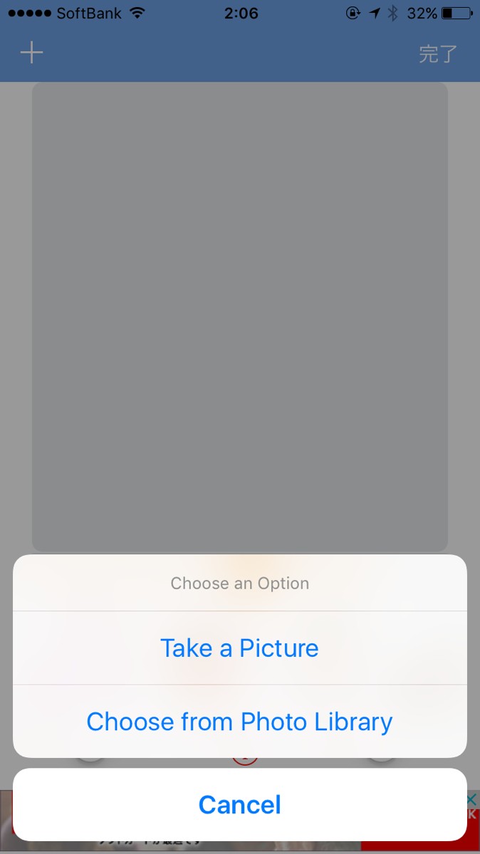 左上の「+」をタップして、その場で撮影するかカメラロールから選択します。