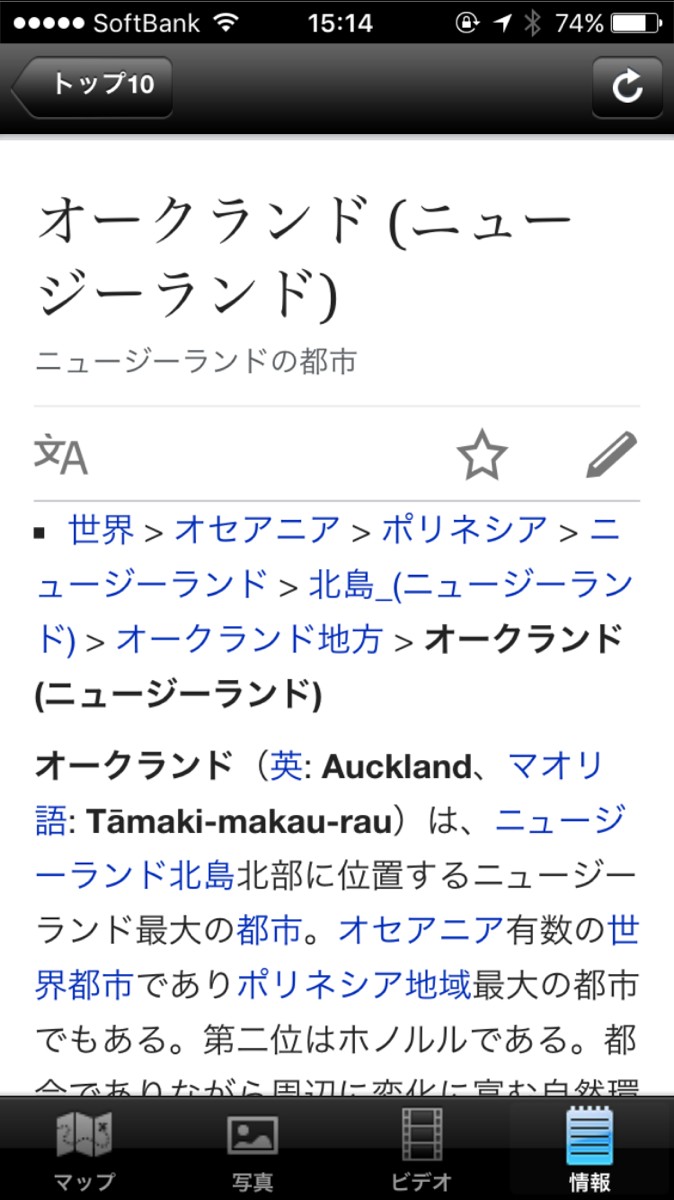 におすすめのアプリです。写真や動画、歴史が載っているWikipediaなどを自分で調べると、別々のサイトから調べる手間がかかるので、「ニュージーランドの観光地ベスト10」を上手に活用してみてください。