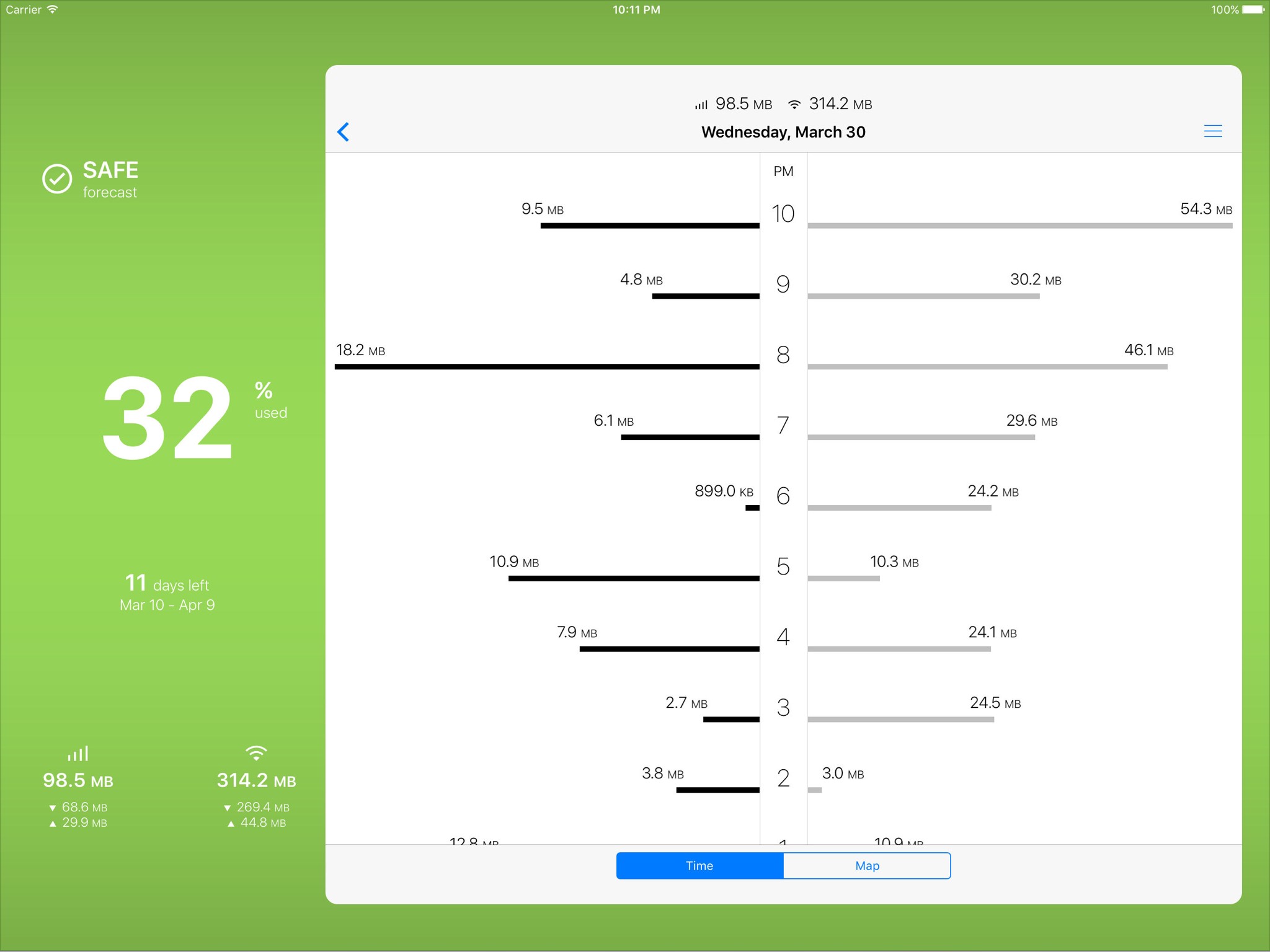 Pro の方は細かな設定やより通信量が使われている部分の詳細を知りたい人におすすめです。サイクルを1日にも設定できるほか、通信量を地図上で見たり、アプリごとの通信状況を監視したりできるようになっています。