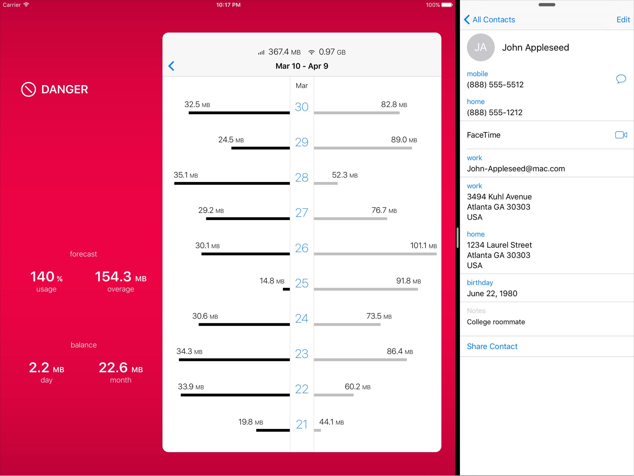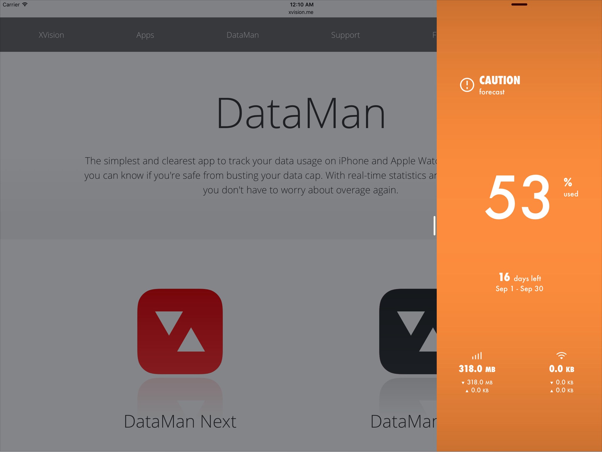 「DataMan Pro」は、iPhone でキャリアのモバイルデータ通信やWi-Fi を使ってどれぐらいデータ通信を行っているのかを計測し、きれいなビジュアルで見せてくれるアプリとなっています。月末までの通信量の予測や、アラート通知といった機能も備えています。