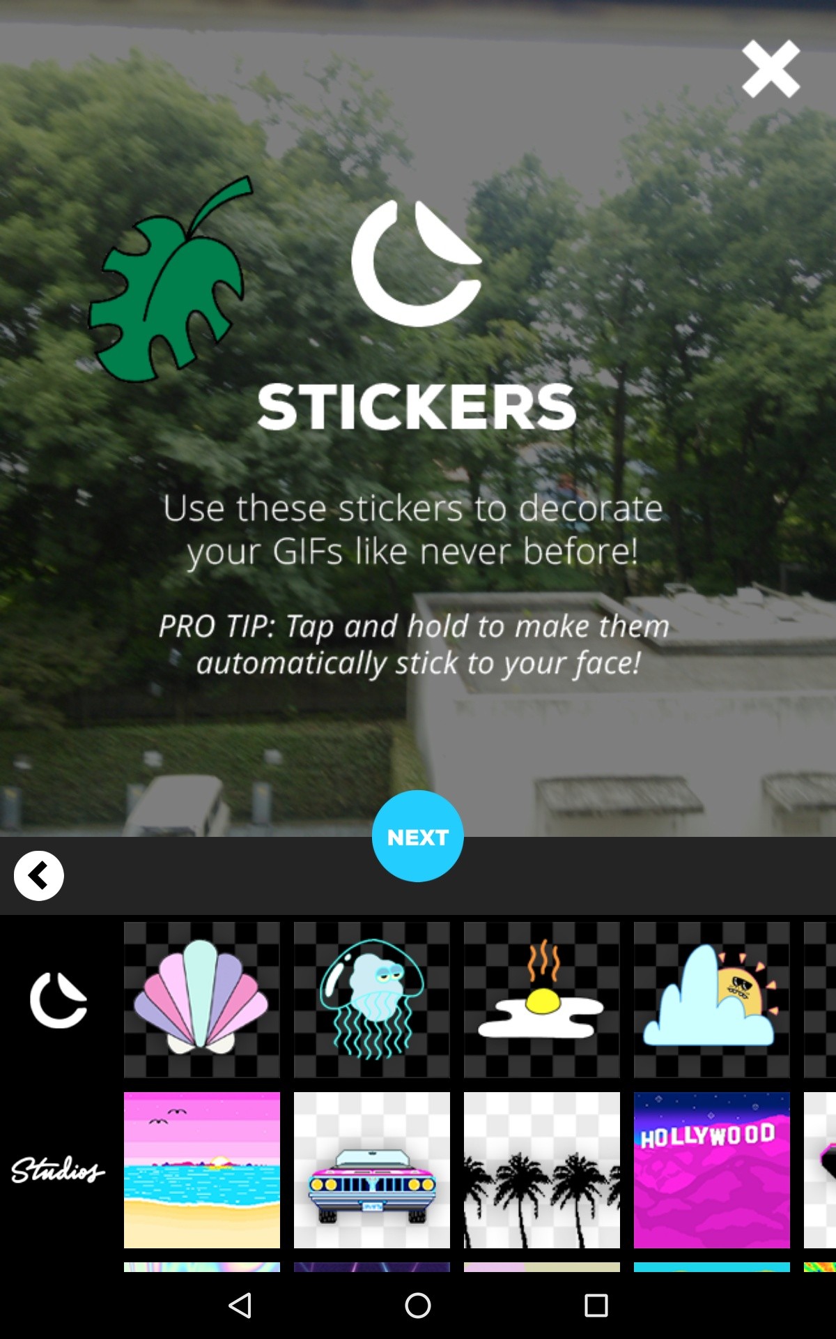 2 画面に表示されたGIF動画(または写真)に、ステッカーやオーバーレイアニメ等の素材を貼り付けていきます。