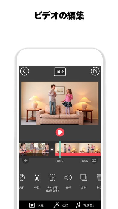 今、スマホに眠っているこれまで様々なシーンで撮影した動画ファイルを生き返らせて下さい。そこで活躍するのは「Vimo 」です。まずは編集機能を使って、速度、音声、画面サイズ設定等を決めて下さい。タイムライン上でいらない動画の部分をカットして全体をテンポよく映像が展開するようにしてみたり、まずは元動画を編集します。