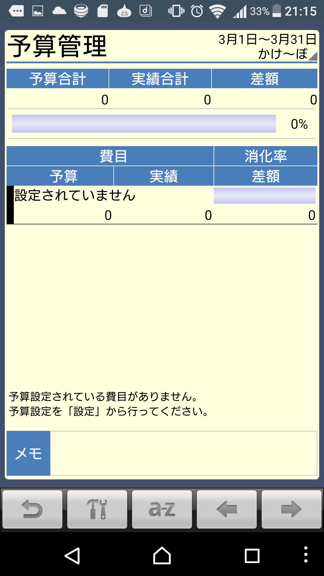入力画面にはメモ欄もあるので、支出内容の詳細などを記載したいときに利用しましょう。