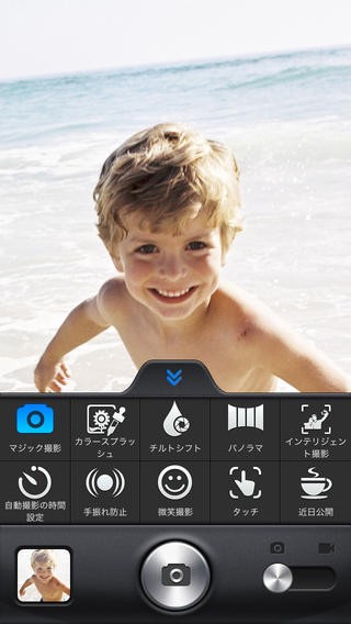 アプリが起動したら、カメラ撮影になります。