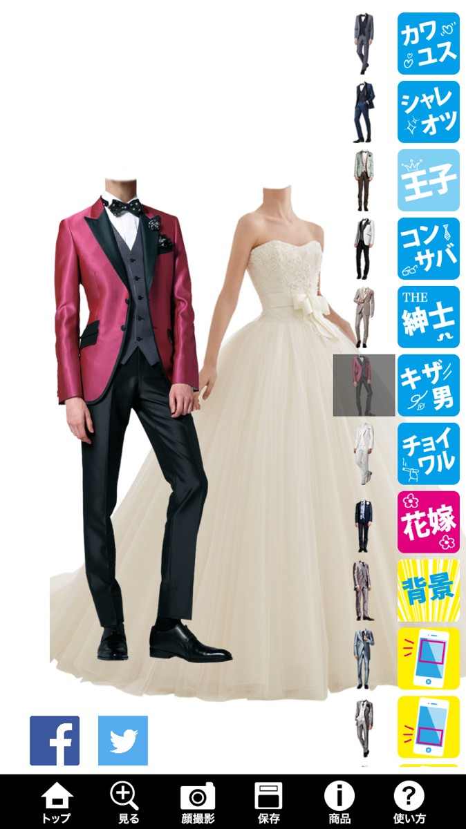 「30秒で結婚式!写メしてリアルに試着!無料着せかえアプリ花婿ルンルン」結婚式のイメージができます