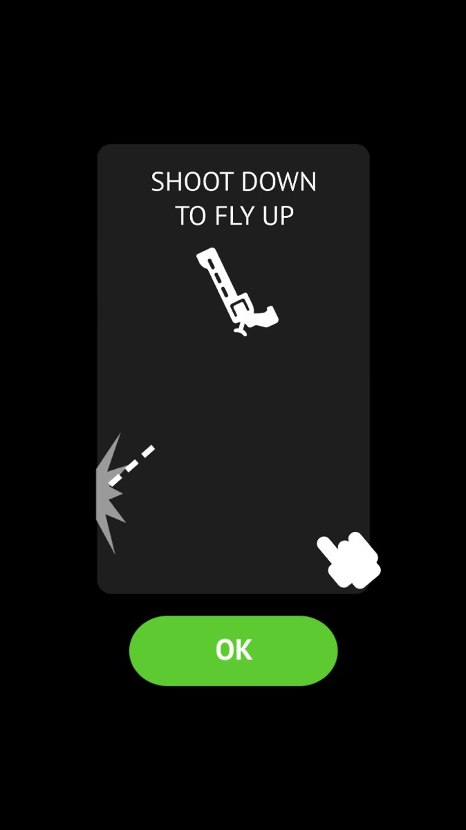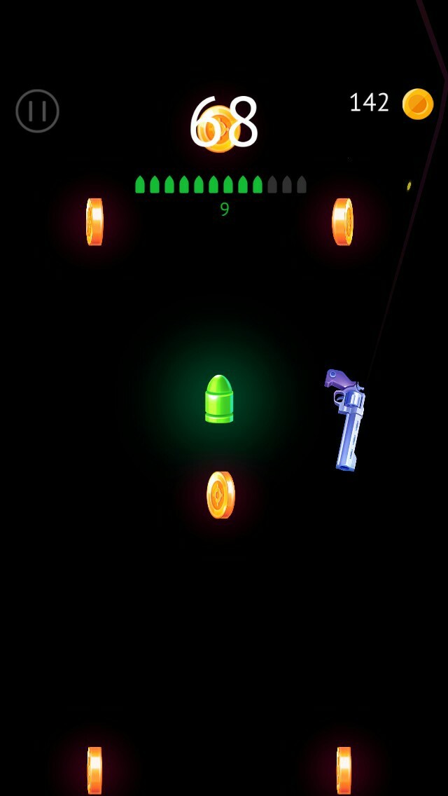 タップして発砲した反動で滞空距離をできるだけ伸ばしてください。ゲーム中に現れるコインを貯めると、グレートの高い銃を購入することができます。銃弾をゲットすると、手持ちの銃弾が増えます。青い矢印の上を銃が通過すると、スピードアップし、滞空距離を一気に伸ばすことが可能です。