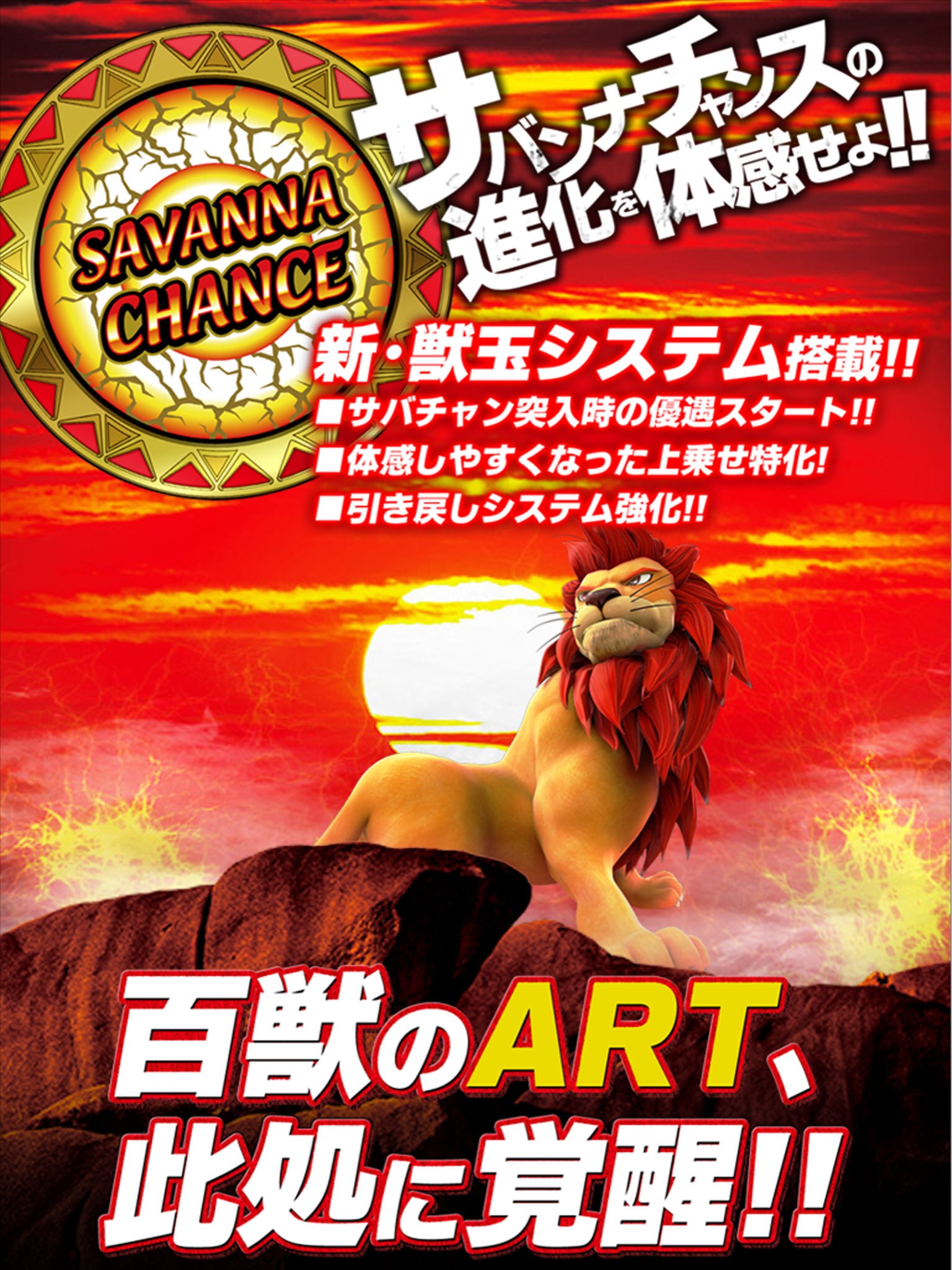 前作よりも突入時の期待値をアップしたART「サバンナチャンス」というものを搭載しています。ART継続やG数上乗せの鍵を握る「獣玉」を前作同様に獲得しやすくされています。上乗せ特化ゾーン突入に必要な個数は前作の半分となっています。ありがたい。大幅なパワーアップを遂げた『新・獣玉システム』によって継続、上乗せを体感しやすくなっています。