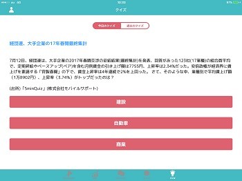 画面最下部の「クイズ」ボタンをタップすると次の画面が表示されます。
