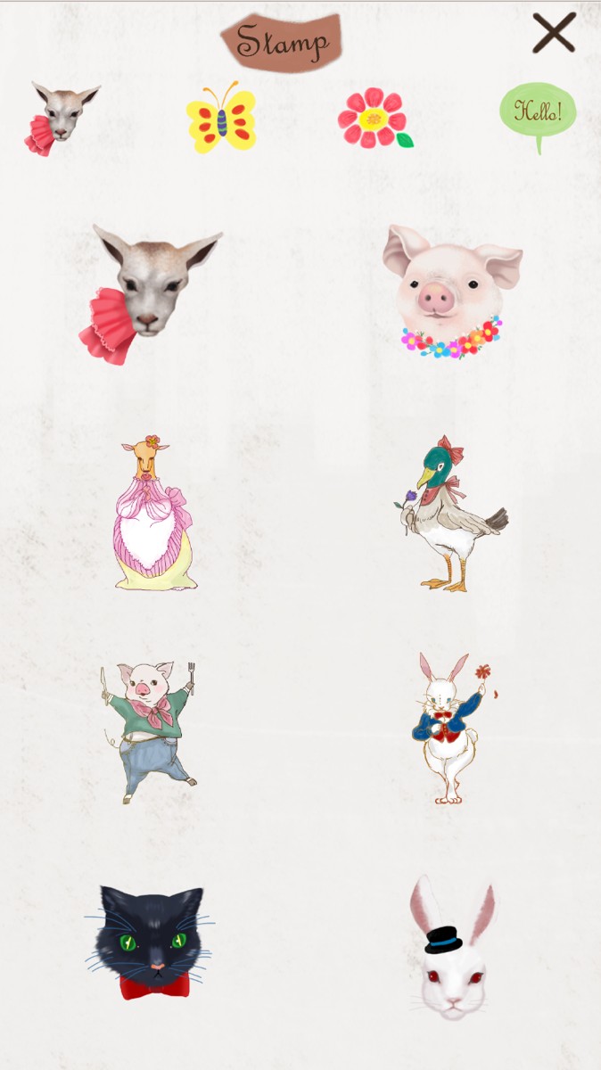 アプリ内は白を基調とした壁紙に、草花がデザインされています。アプリを開くだけで、心が弾みますよ!アイコンも切手をモチーフにしたものや、アンティークなスタンプなどがあり、とにかくどれを見てもかわいいです!