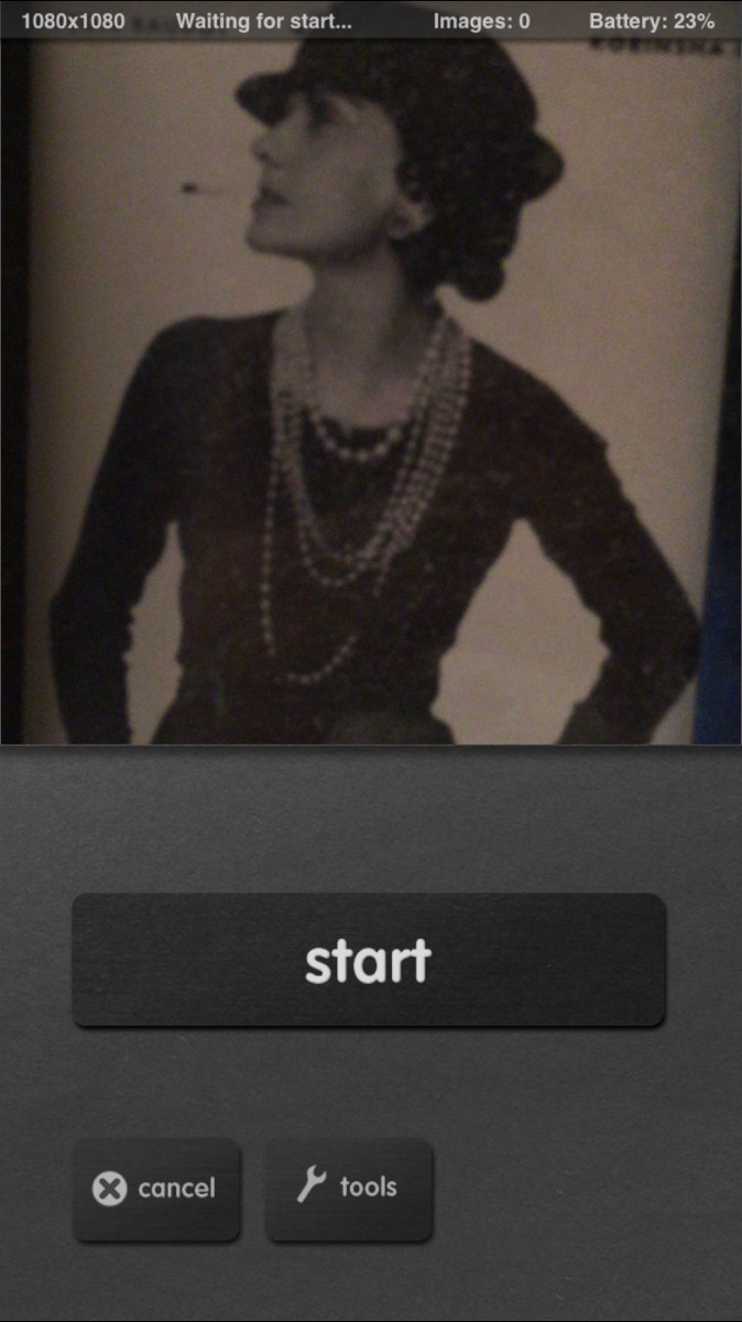 ここでは基本的な説明をしたいのでそれ以外の設定などは割愛させていただきます。では、「start」をタップしましょう。すると、撮影が開始されます。