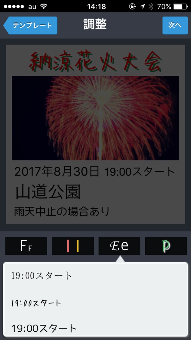 3.画面下部にあるテンプレートから好きなものを選ぶ。各テンプレートをタップすれば、イメージ画像が表示される。